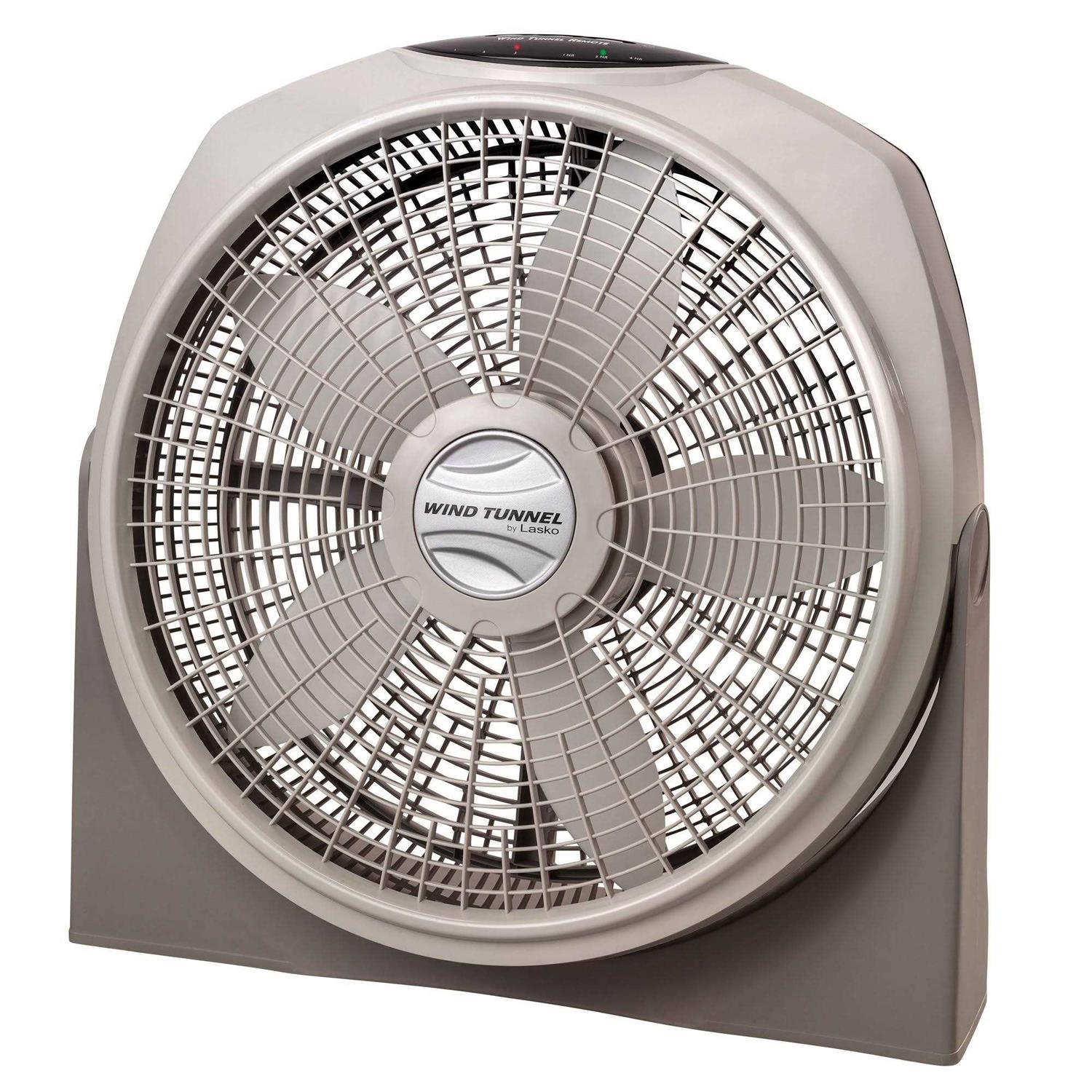 The Lasko 20 inch Wind Tunnel 3-Speed Fan provides a powerful cool breeze in every room. This high performance machine offers a full-range pivoting head that locks in place so you can set it to the speed and angle you desire. Place the Lasko Wind Tunnel Fan directly in front of an air conditioning vent to circulate air conditioning faster and boost your chill factor. Use the remote to conveniently control the settings from the comfort of your bed or couch. It features an electronic timer that allows you to set one, two or four hours of operation time. This Lasko 3-speed fan can be wall mounted if desired. It has an easy-carry handle, which makes it simple to transport around your home, business or job site. The Model #A20700 fan is gray and made out of high-impact plastic, making it lightweight and immune to rust. Lasko 20 inch Wind Tunnel 3-Speed Fan is ETL listed and includes a patented, fused safety plug with a 70 inch cord.