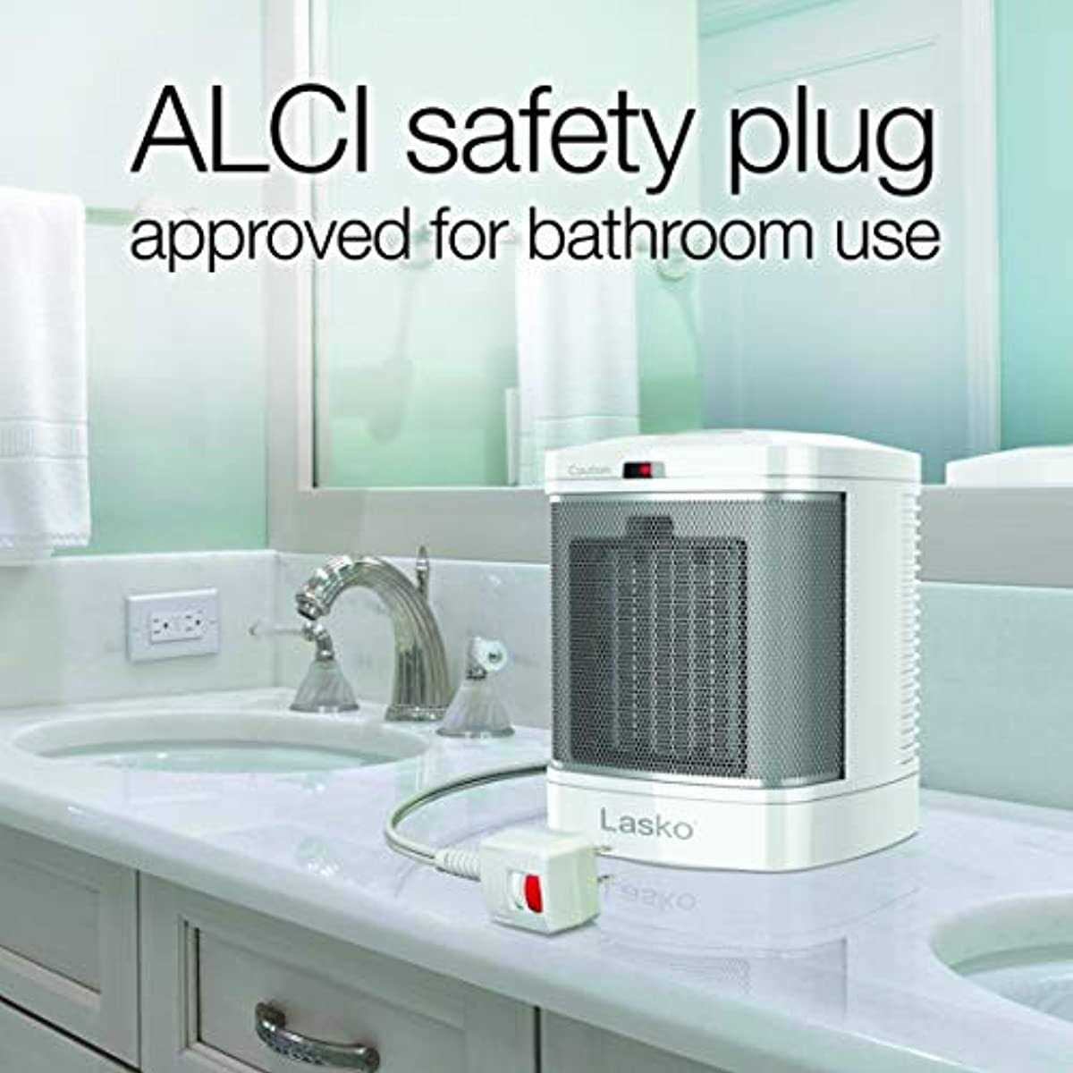 The Lasko CD08200 is a small, white, portable ceramic space heater that is specifically designed for home bathroom use. Even though it’s designed for bathroom use, this heater can be used anywhere in the house or apartment to eliminate cold spots and save you from the added expense of turning up the whole-house thermostat on chilly days and nights. The heater comes with an integrated ALCI safety plug (a device that shuts off power to the unit in a fraction of a second in the event of a short). It’s also ETL Listed and comes with Automatic Overheat Protection, a self-regulating ceramic heating element, and an exterior that stays cool to the touch – taking the worry out of using the heater for long periods of time.Powered by an energy efficient 1500-watt ceramic heating element with 3 heat settings, this little heater puts out a lot of heat. Say goodbye to stepping out of the shower during the cold winter mornings and feeling chilly as you dry off as this small & mighty heater heats up the bathroom fast. By the time you get out of shower, the entire bathroom is warm and steamy so you can towel off in spa-like comfort. This heater is easy to use and no assembly is required. Simply take it out of the box and plug it in. Theres just one big button on top. Press it once for high heat for one hour. Press it again for high heat. Press it again for low heat and press it a fourth time to turn it off. Attractively designed and at less than 8 in. tall with a tiny 6 in. x 6 in. footprint, it consumes minimal counter top, table, desk or floor space. It can be easily stored when not in use. Lasko has been making quality products for over 100 years so you can be confident your heater will last.
