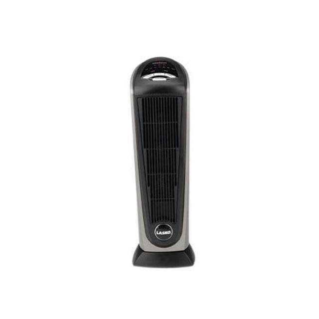 Lasko Ceramic Tower Heater with Remote – Silver/Black