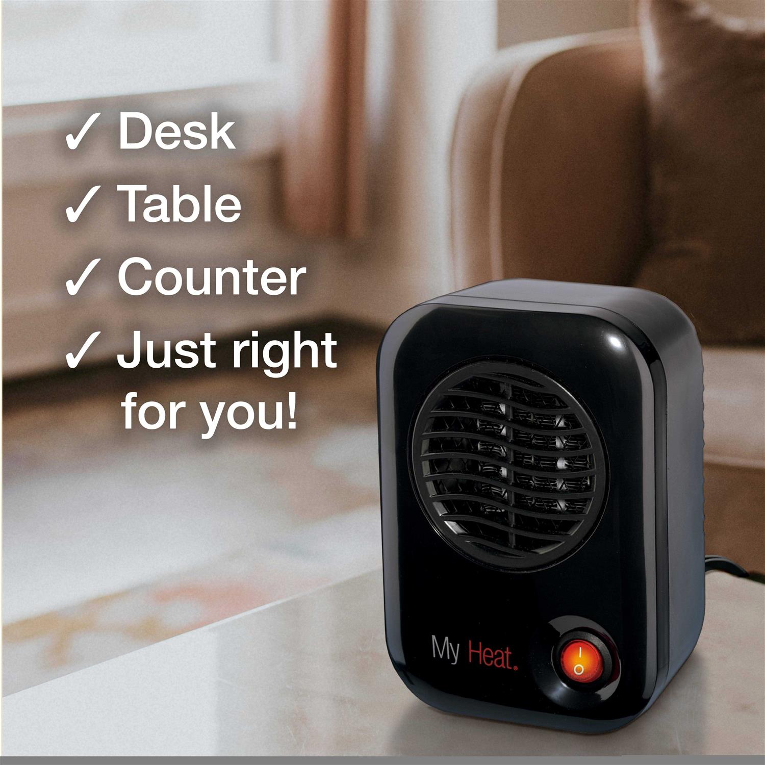 Winter is the perfect time to snuggle under a blanket to keep warm, but sometimes you need a little extra warmth at the office or at home. Keep yourself warm with help from the Lasko MyHeat Personal Space Heater. This small personal space heater generates the warmth you need to stay comfortable reading a book, playing video games, or working at the office. Just flip the switch and enjoy the warmth. The MyHeat personal heater uses ceramic heating elements that heat up quickly and a reliable fan-powered delivery system to spread warmth to you. You’ll get 200 watts of concentrated personal warmth with this personal desk heater. Carry this portable space heater to any room. This heater measures a mere 4 inches long, 3 inches wide, and 6 inches tall. With overheat protection and a cool-touch exterior, you can even use it as a personal office heater.