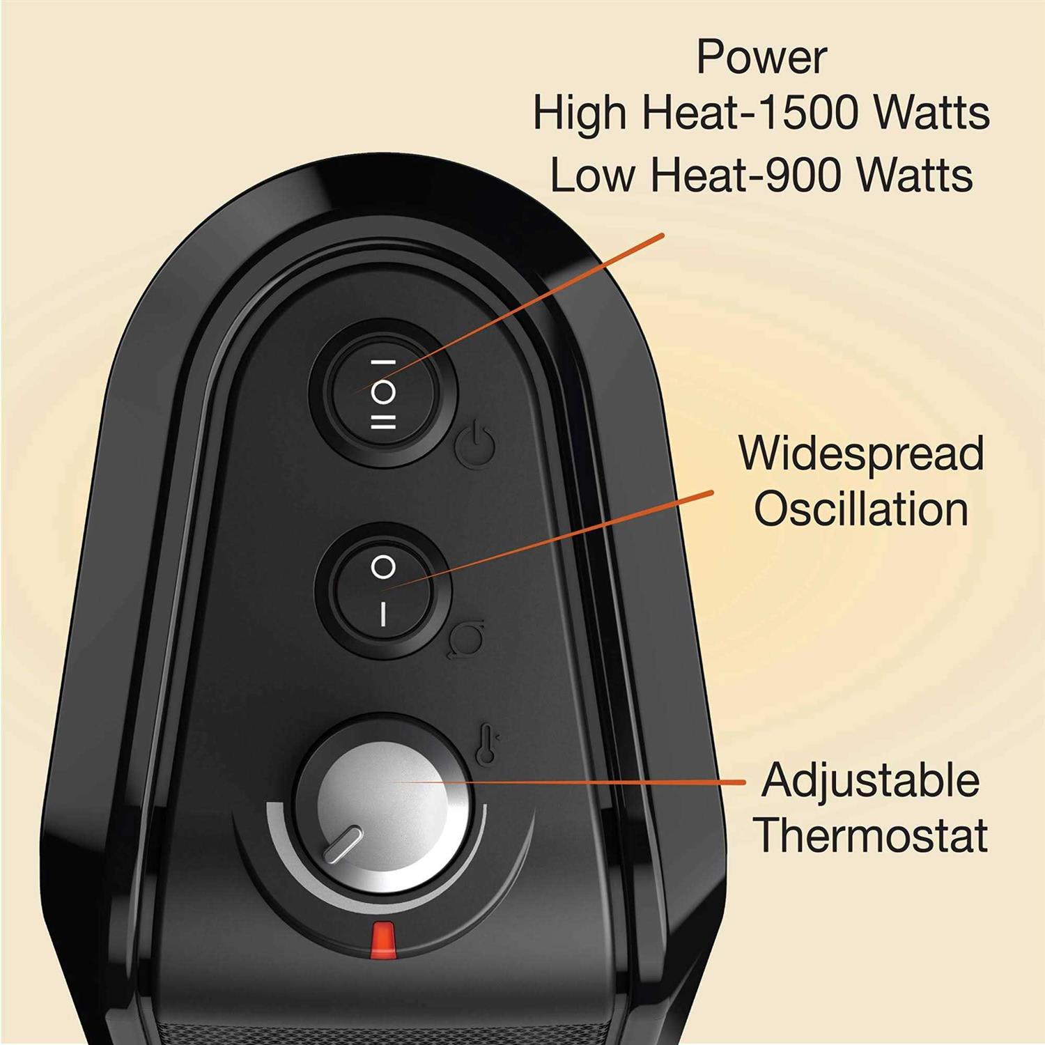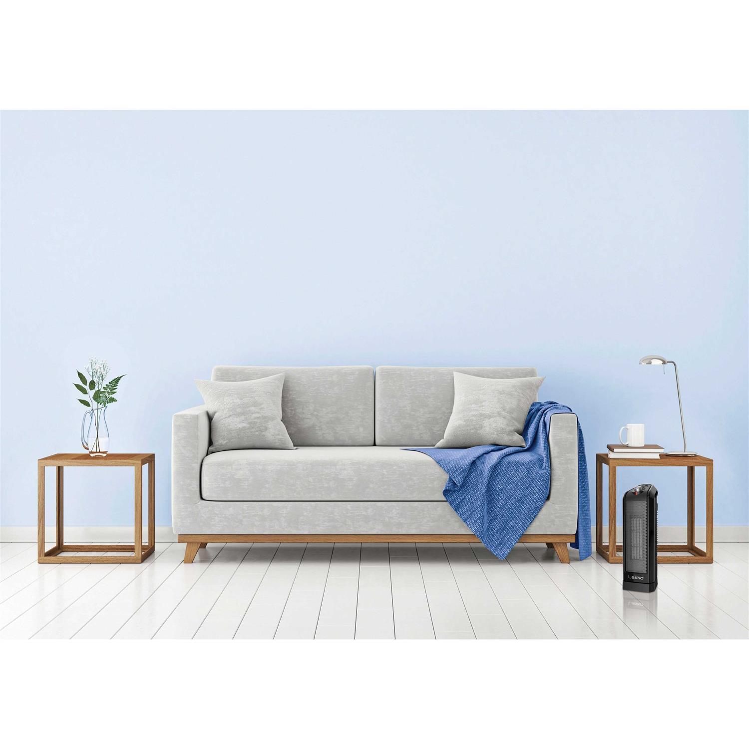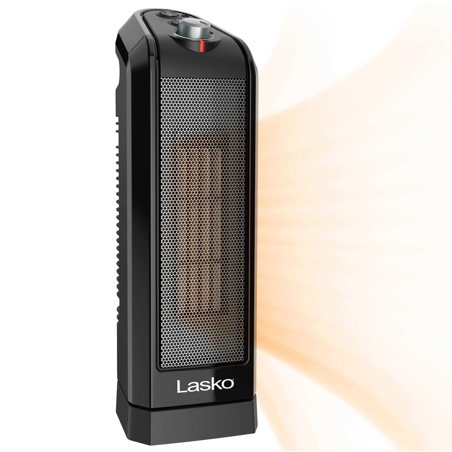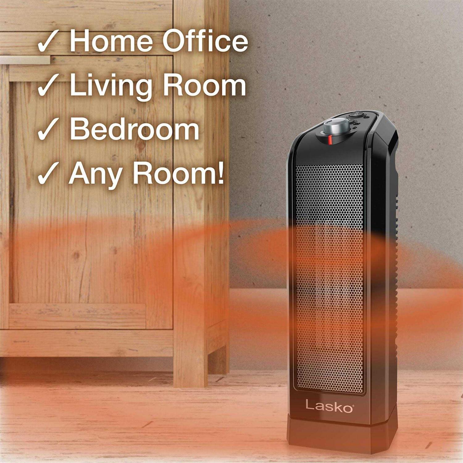 This powerful ceramic space heater from Lasko is ideal for tabletop or floor use. With 1500 watts of comforting warmth, this small heater will make you feel more comfortable in any room in the home. This portable heater features an adjustable thermostat, easy-to-use controls, widespread oscillation, 2 heat settings, and a built-in carry handle. When the weather turns chilly, save on your overall heating costs by warming the room youre in and turning down the whole-house thermostat. This electric heater is equipped with safety features, including overheat protection and cool-touch housing. Comes fully assembled.