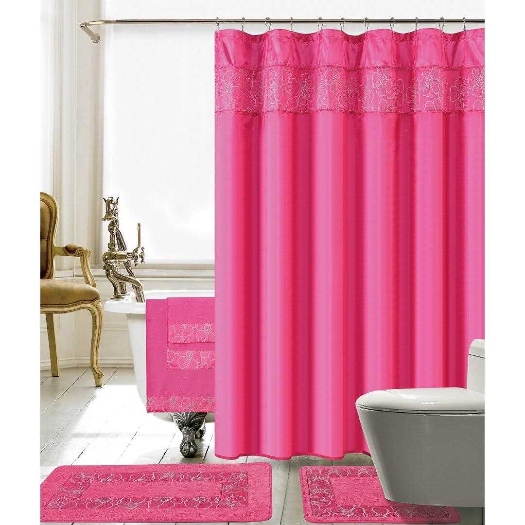 Latitude Run Sanches 18 Piece Embroidery Shower Curtain Set, Pink
