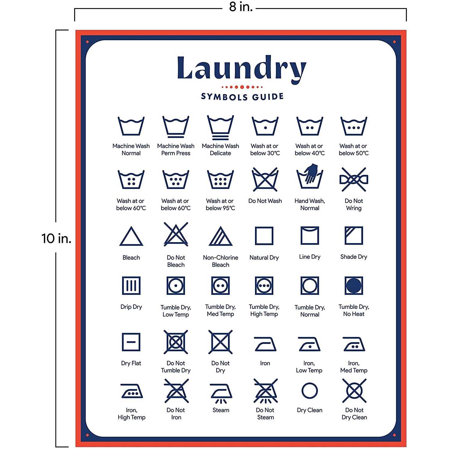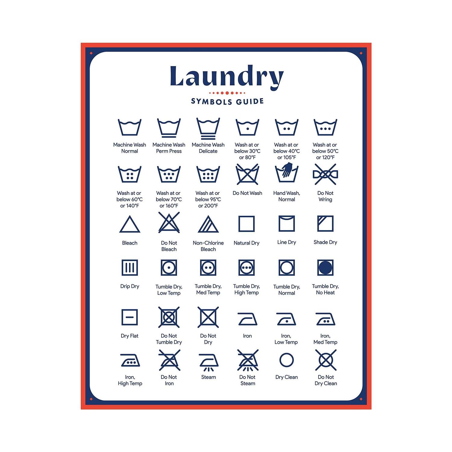 On the tag of nearly every garment in your hamper is a secret language of symbols. “Wash at or below 60°C,” “hand wash,” or “tumble dry, low temperature.” Many people just separate their colours from their whites and go from there, because they don’t know what those “care on reverse” pictures mean. Think of this convenient laundry chart as “fashion insurance.” You’ll get longer life, brighter colours, and better fit from your favourite clothes if you understand the proper way to care for each garment. The Laundry Symbols Guide from Jot & Mark is tasteful, simple, and clear. Affix it easily to the top or side of your washer or dryer, or hang it up in your laundry room. The chart clearly explains 36 of the most common care instructions on modern fabrics and colours. Designed and made in USA.