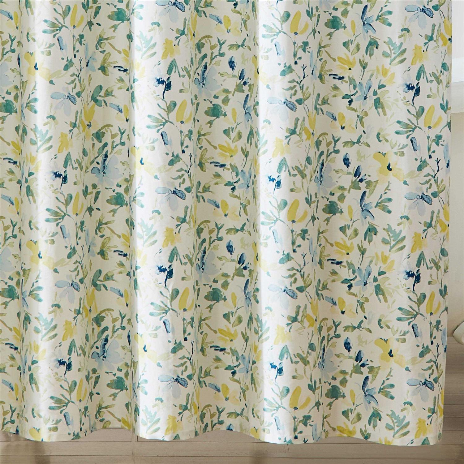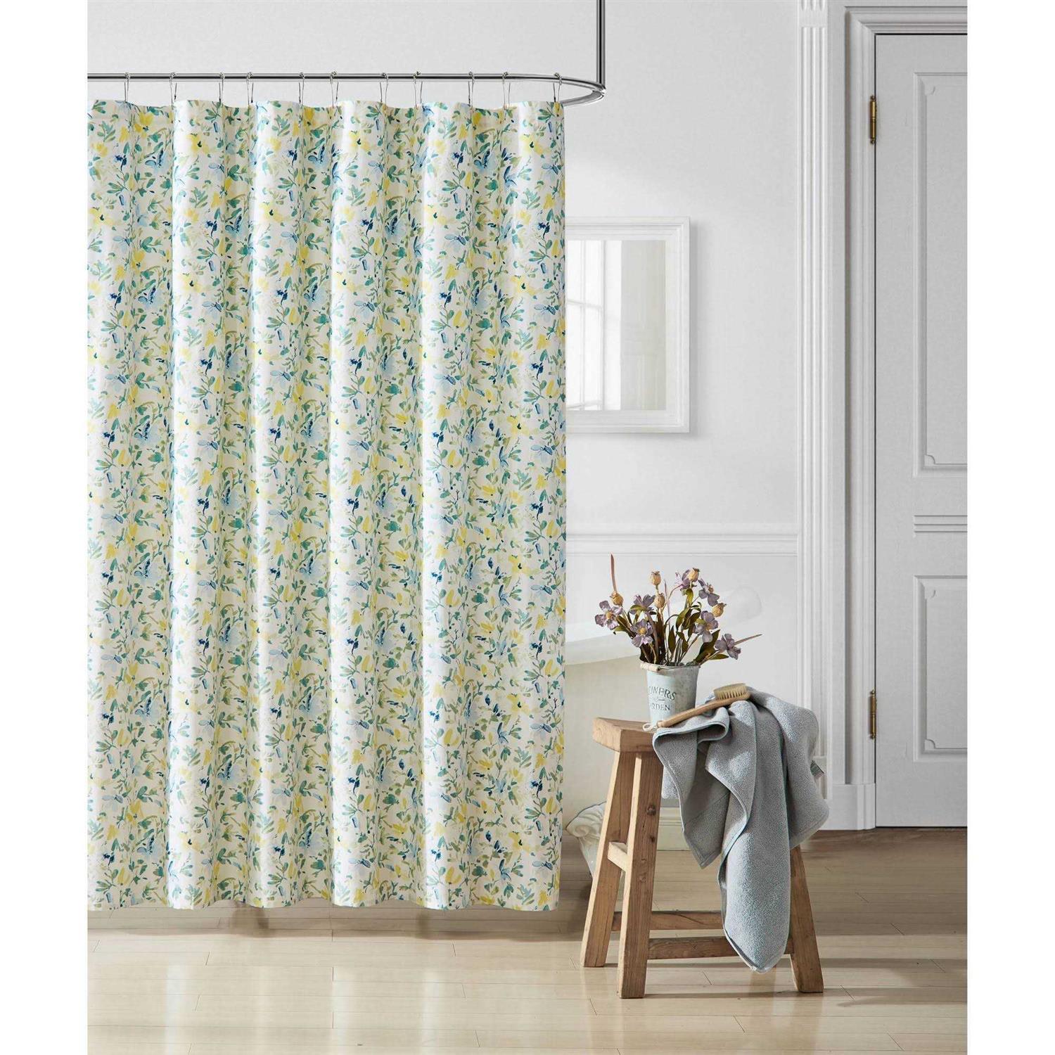 From Laura Ashley, this shower curtain features:Update your bathroom with the Laura Ashley Nora shower curtain. This curtain features a beautiful watercolor floral design in a garden fresh palette of cornflower blues and sunny yellow on a cotton quality.Cotton A garden fresh palette of cornflower blues and sunny yellow on a crisp white cotton ground Printed watercolor design 12-button holes for easy use with curtain ringsHooks and liners not includedApprox. 72″ W x 72″ LMachine wash cold and tumble dry low Imported.