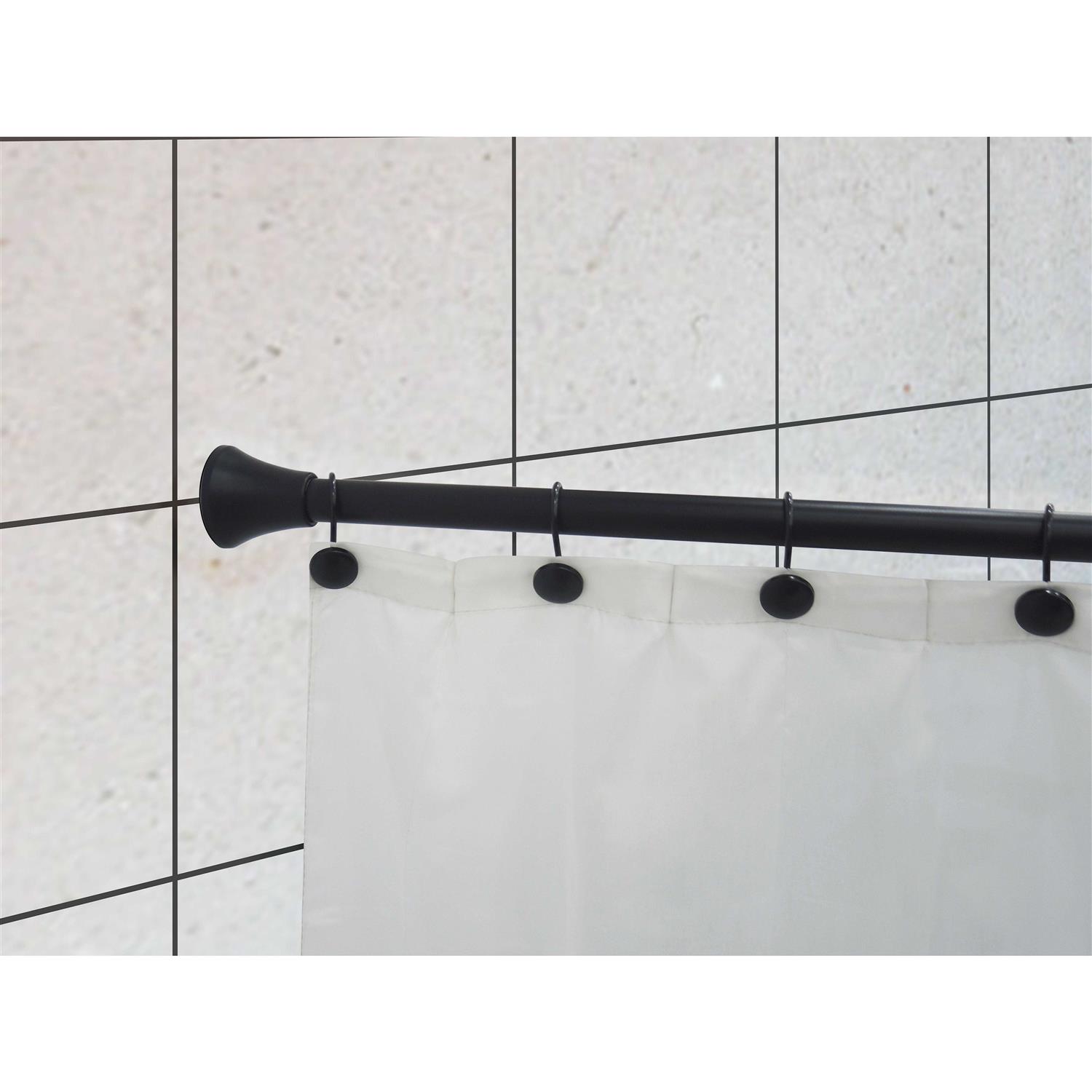 - Adjustable shower curtain rod set with 12 premium flat button hooks