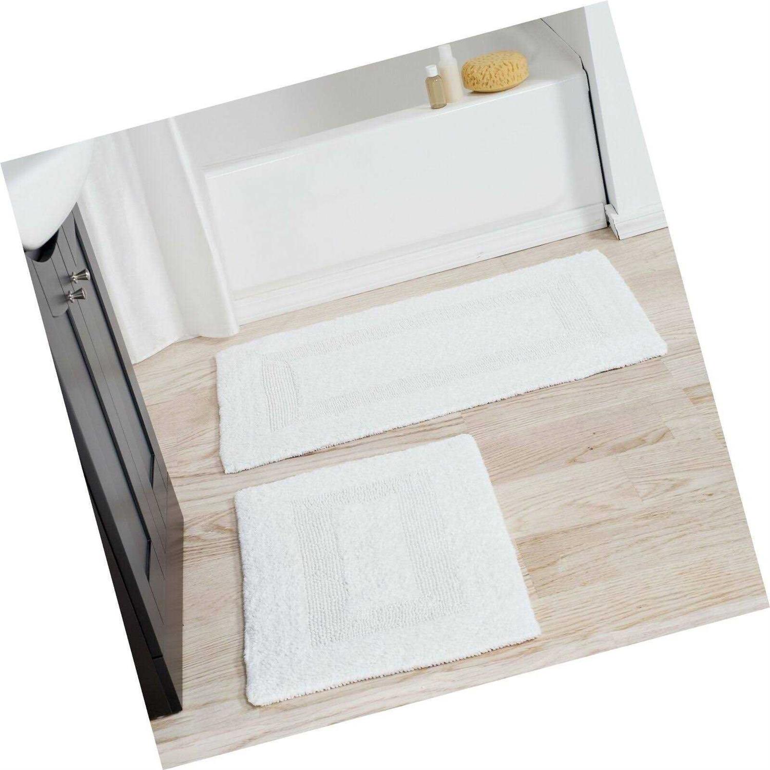 Lavish Home 100% Cotton Reversible Bath-Rug Set (2-Piece): White