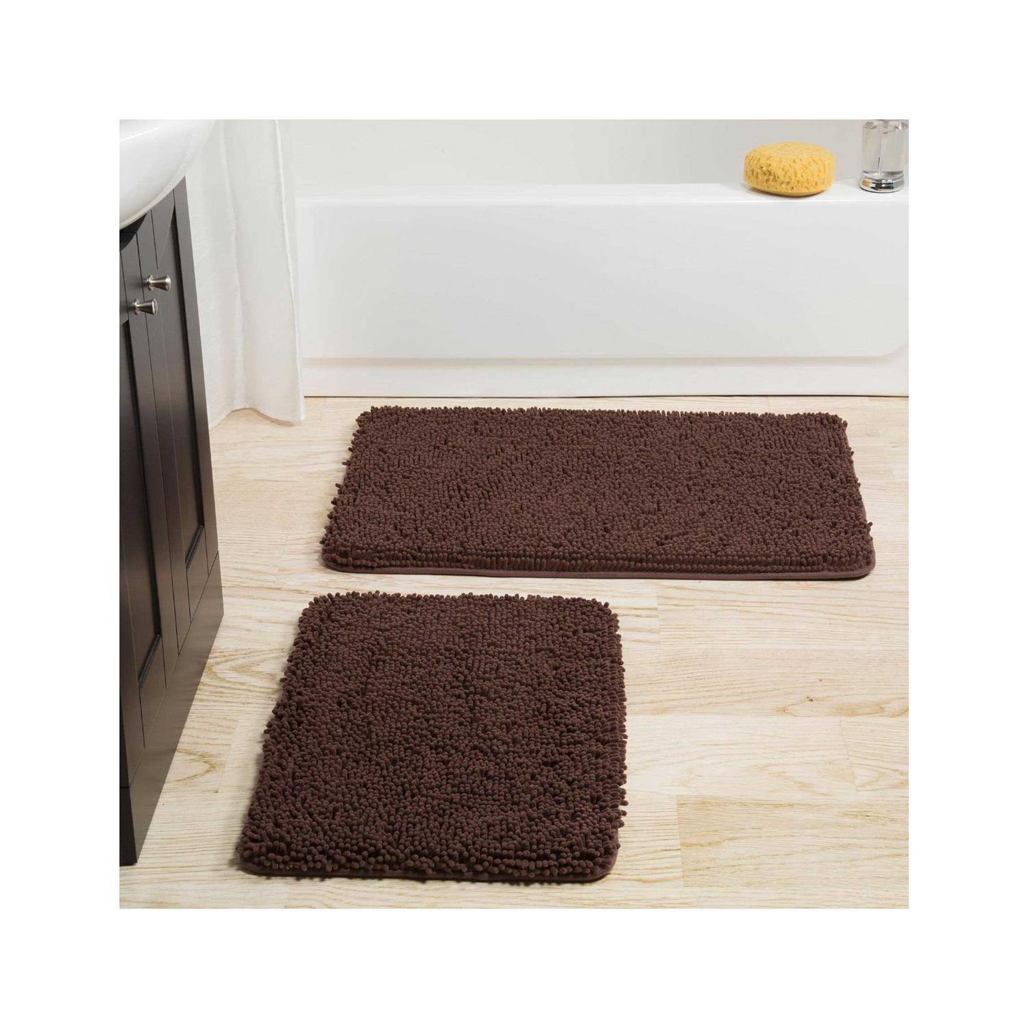 Lavish Home 2 Piece Memory Foam Shag Bath Mat Set Chocolate