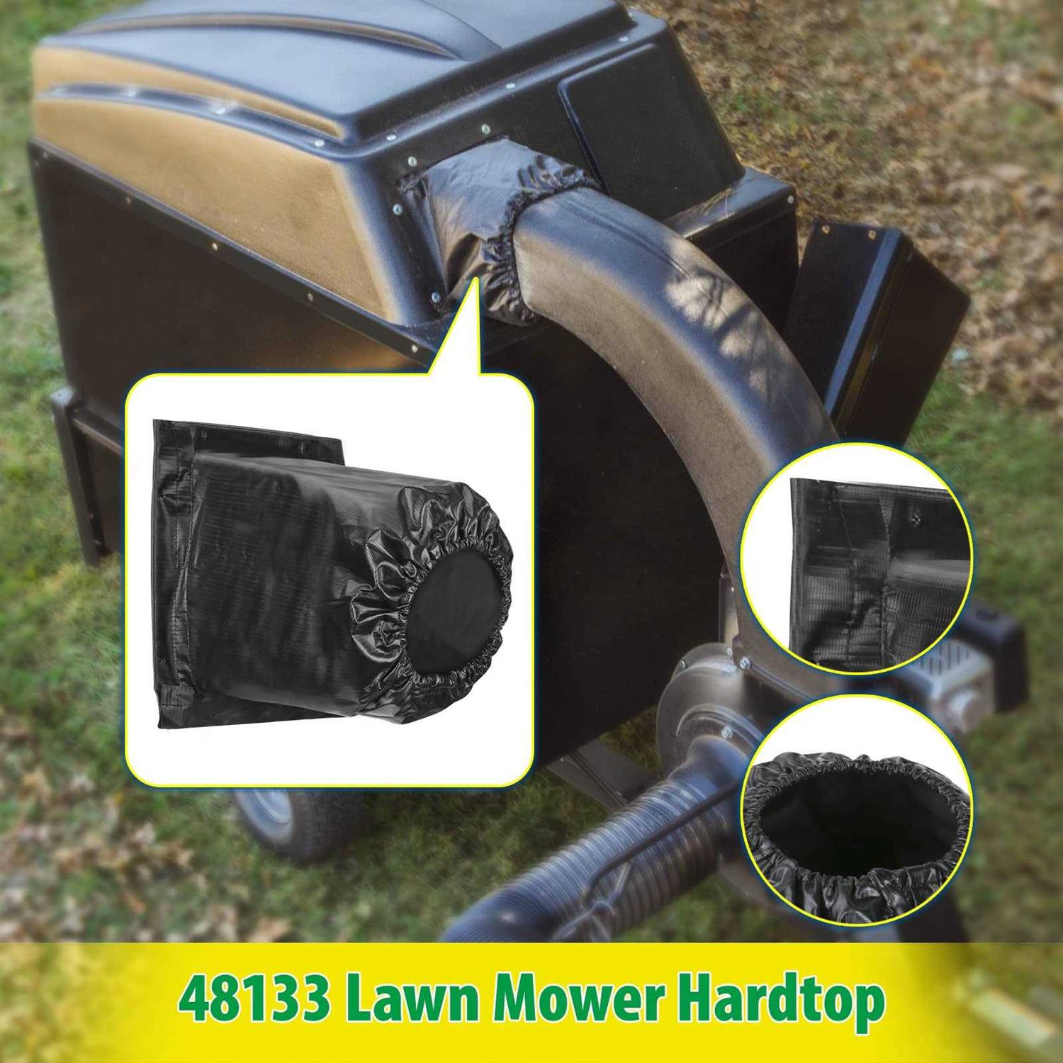 This mower hard top boot is used to connect the vacuum cleaner connecting pipe and the hard top, and is the perfect replacement for the damaged lawn mower hard top boot. The lawn vac part is suitable for the following models – compatible with mow-n-vac models 45-0540,501885,501885B, 501886,501887,501888,551889,551889A, 551889B, 190-217C-100,190-217D-100,190-217E-100,190-217F-100. Compatible with chip-n-vac models 502492,502493,502494,552493, 552494,552496A. This replacement part for Agri Fab is easy to install. Fix the hole at the bottom of the hard top boot to the installation hole position on the hard top by rivets, and then cover the top onto the connecting pipe of the vacuum cleaner. This mower hard top boot is made of high-strength composite material, which has good stability and corrosion resistance, is not easy to tear, and has a long service life. This mower hard top boot is used to connect the vacuum cleaner connecting pipe and the hard top,compatible with most Agri Fab.Replace part number 48133. It is made of high-strength composite material, has a long service life and can serve your lawn for many years.