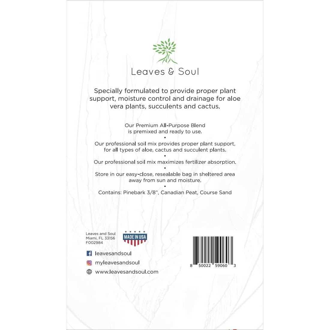 Leaves and Soul Professional Aloe Plant Soil, All Purpose Blend, Large, 2.2 Quarts