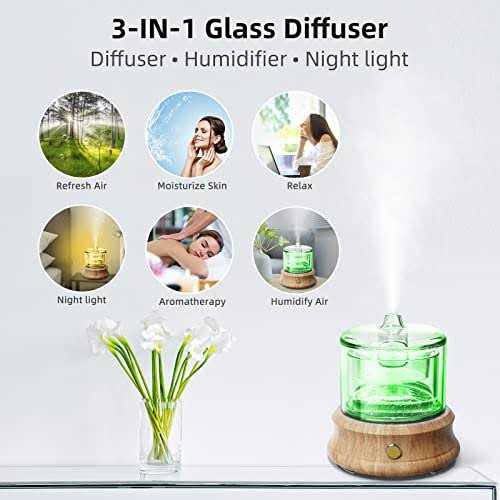 About The Item: [glass Reservoir And Cover] This Diffuser For Gift Has A Glass Water Tank, Glass Cover, Wood Base, Maximum Retention Of The Natural Ingredients Of Essential Oils, It Doesnt Get Smelly Or Moldy Like The Plastic Ones. Give You A Health And High-quality Aromatherapy Experience. And Giving It A Classic Design That Goes Well With Any Decor. [easy To Use And Clean] One-button Control The Light And Mist,easy To Operate And Bring A Contract And Vintage Style. Glass Material Is Also Easi.