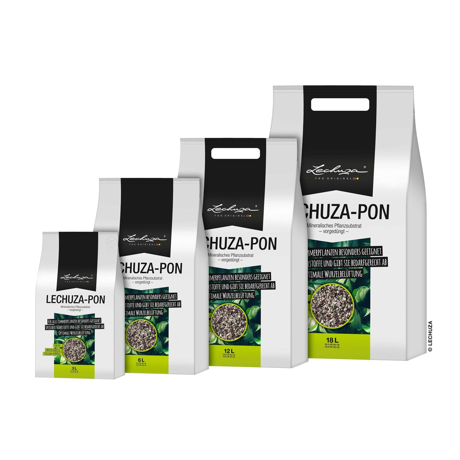 • LECHUZA-PON has the optimal air/water ratio for plants of 45% water / 55% air