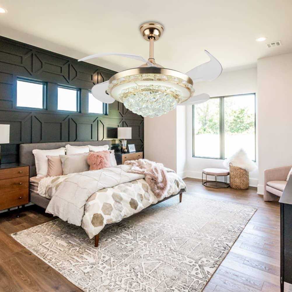 Afanqi 42 inch Crystal Fandelier Ceiling Fan with Light Chandelier with Fan 3 Speed 3 Color Remote Control LED Lighting Fixture for Living Room Dining