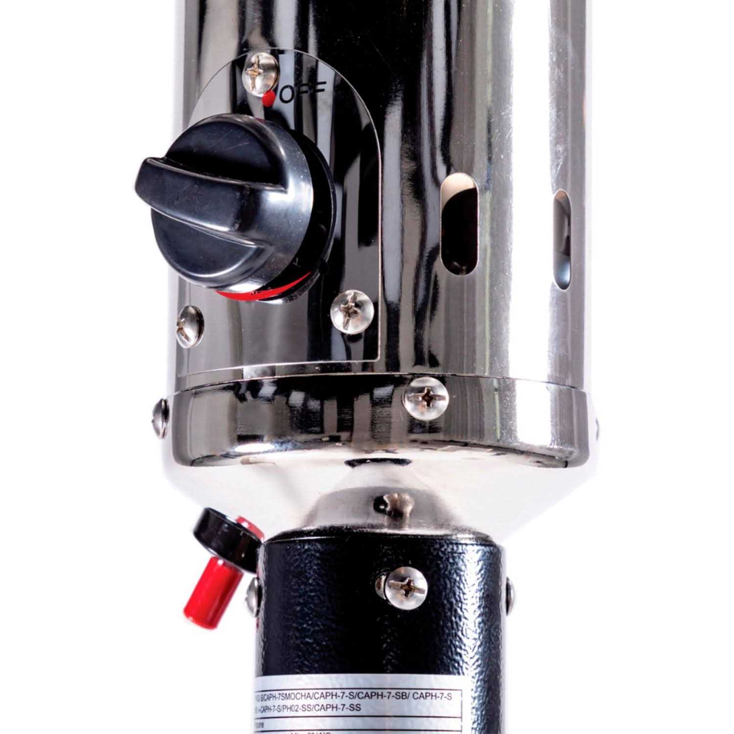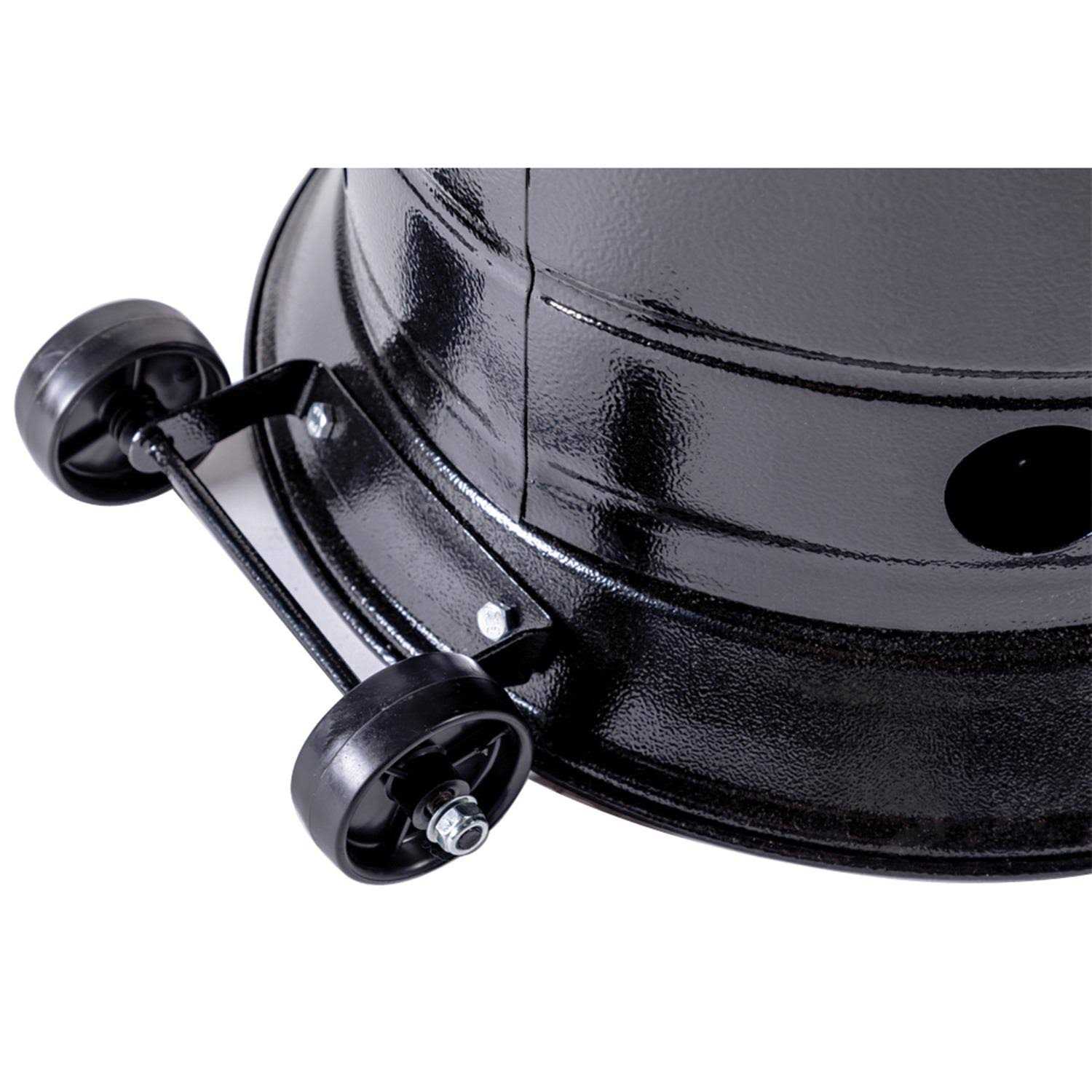 Product overall size 30X30X88IN Hammered black powder coating 47,000 BTUs Wheels for easy mobility control, front high output to low output, without pilot use 20lb propane tank(not included) Details 47,000 BTUs Powder coating finish provide an antique look. This multi-purpose heater is ideal for use on your patio, restaurant, pool deck, or for a party, wedding, or any outdoor event (patio heaters are not for use indoors, near combustible materials, or in partially enclosed outdoor areas such as tents. Traditionally unit suit for every family.Piezoelectric ignition. Safety auto shut-off tilt valve. For enhanced safety and peace of mind, the heater also features a shut-off tilt valve that turns the heater off automatically if it gets tipped over. Wheel assembly included. A wheel assembly with two smooth-rolling wheels comes included, making it easy to transport the outdoor heater from the poolside to the patio or from one side of the deck to the other. A nice alternative to a fire pit, the gas patio heater delivers quiet, soothing, consistent heat with no smoke or open flames to worry about. The perfect item for cold, romantic evenings.All accessories required for use are provided in the box, including wheels, heavy-duty propane gas regulator, and a pre-attached flexible hose.