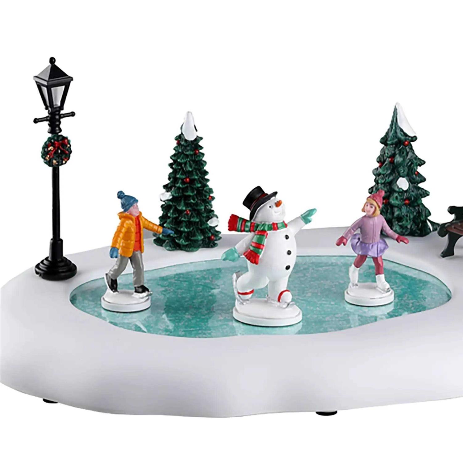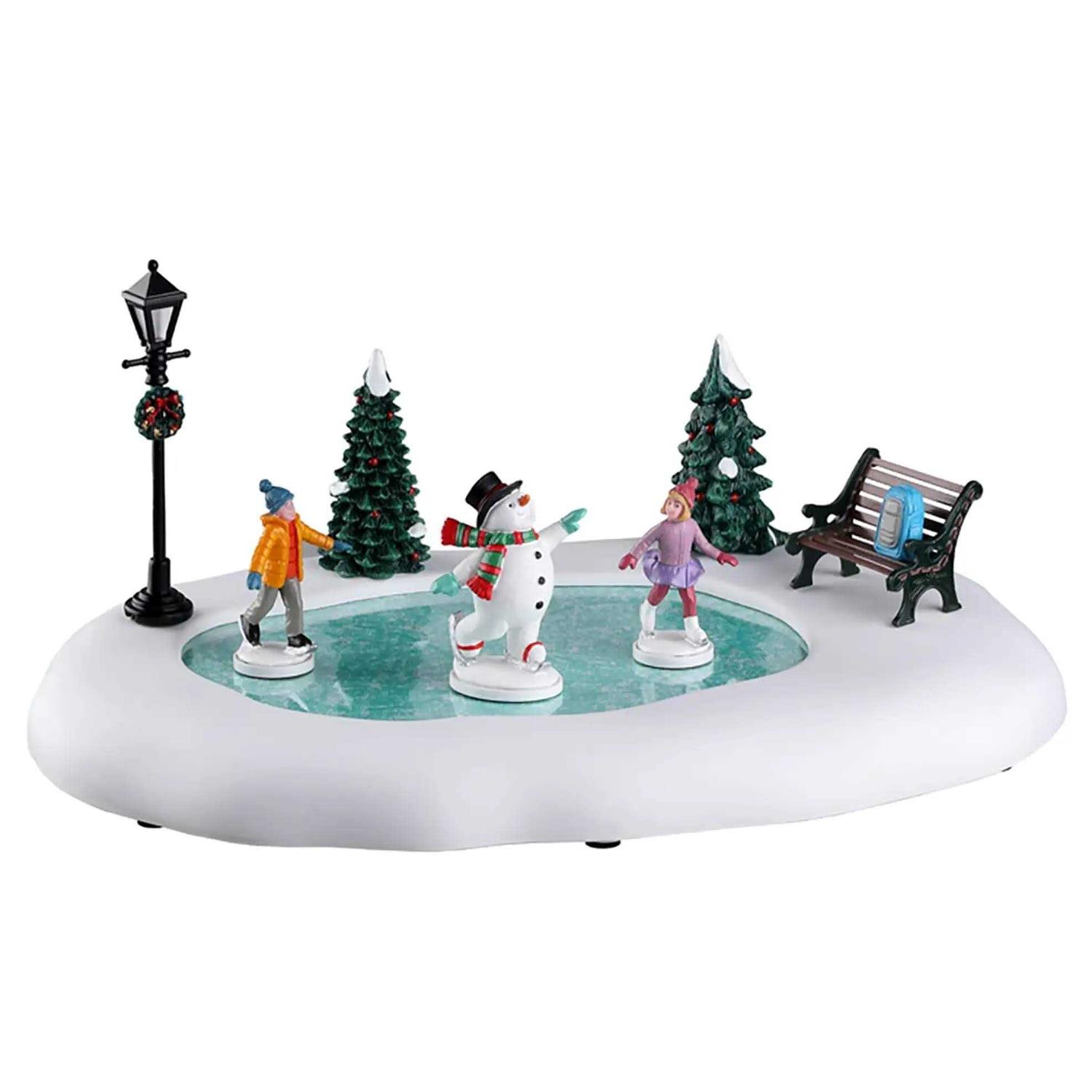 Lemax ‘Frosty Goes Ice Skating’ is a festive animated scene showing local children enjoying skating around an ice rink with Frosty the Snowman. ‘Frosty Goes Ice Skating’ belongs to the Lemax Vail Village Collection. Whether you’re adding to your model Christmas village collection, or choosing a stand alone table decoration – this will make a fun addition to any display. Released in 2022. Made from plastic.