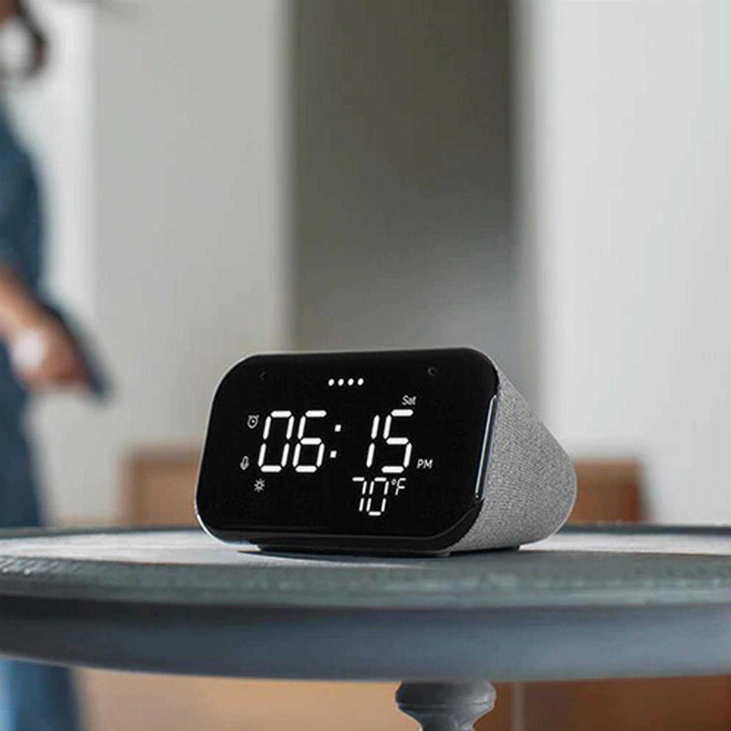 The smart clock for every room. The Lenovo Smart Clock Essential is the ultimate smart clock for any room. Talk to Google for hands-free help. From checking the time weather setting timers for cooking adding items to your shopping list or making hands-free calls the Lenovo Smart Clock Essential is here to help you be more productive and take back time. Its also a great night-time companion with its built-in nightlight that provides a small source of light without waking up the whole family. No more stumbling around in the dark when searching for things. Listen to music news podcasts and more with the clocks quality speakers. Control over 40000 compatible smart devices from over 5000 brands. Ask Google to set the temperature dim the lights and more. Just say Hey Google.