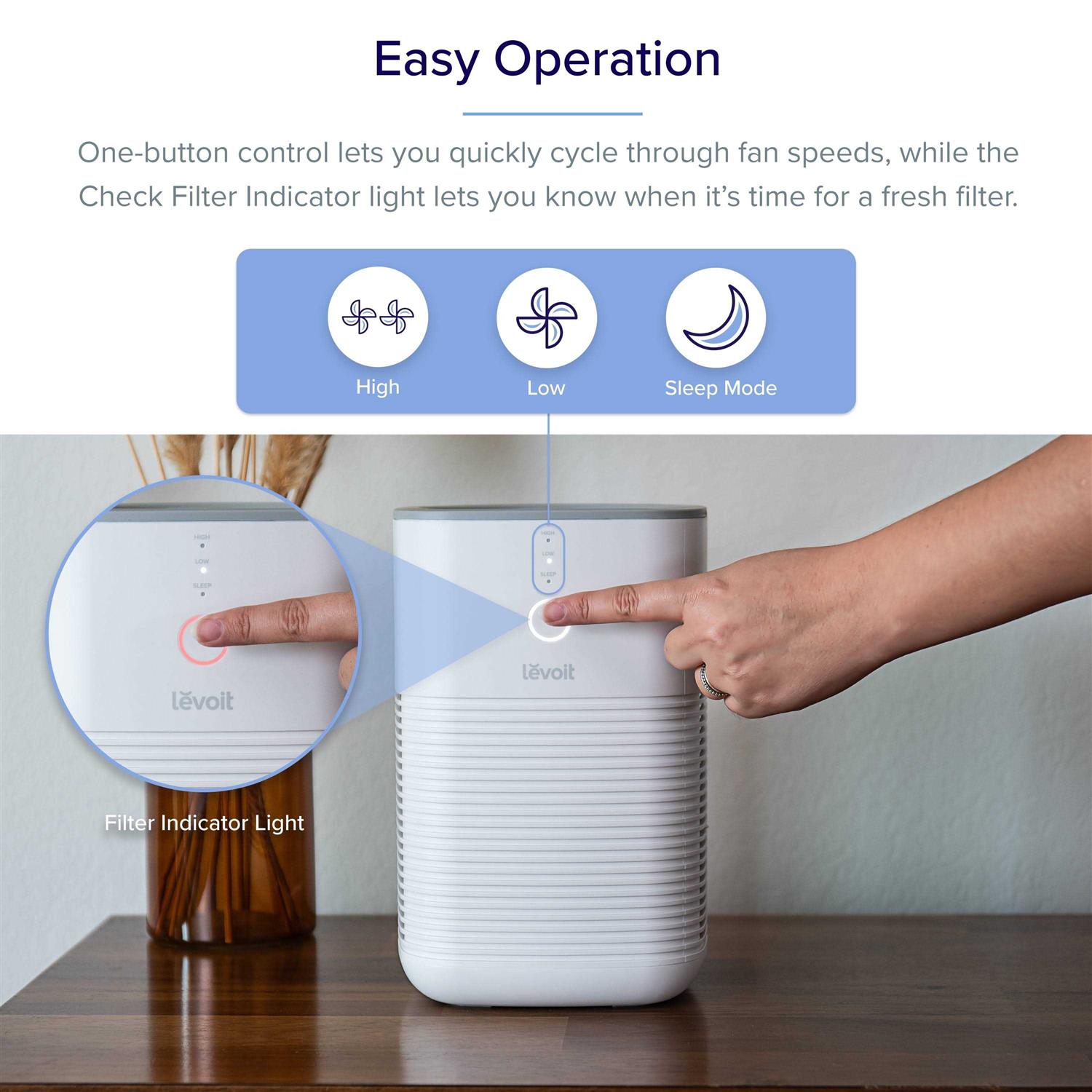Quiet enough to never disrupt work or sleep, this LeVoit air purifier features three-stage filtration and a compact footprint that fits easily on a desk or night stand.