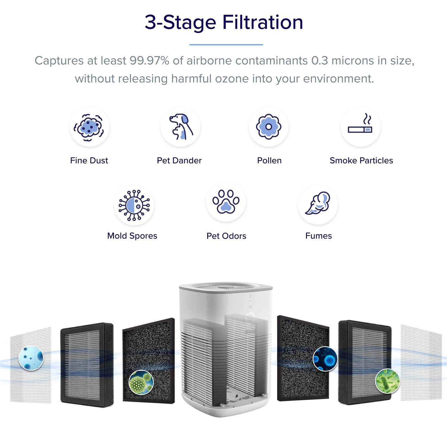 Levoit Air Purifier True HEPA Dual-Filter, with Aromatherapy, 3 Fand Speed, Bonus Aroma Pads, LV-H128-RXA, 1 Pack