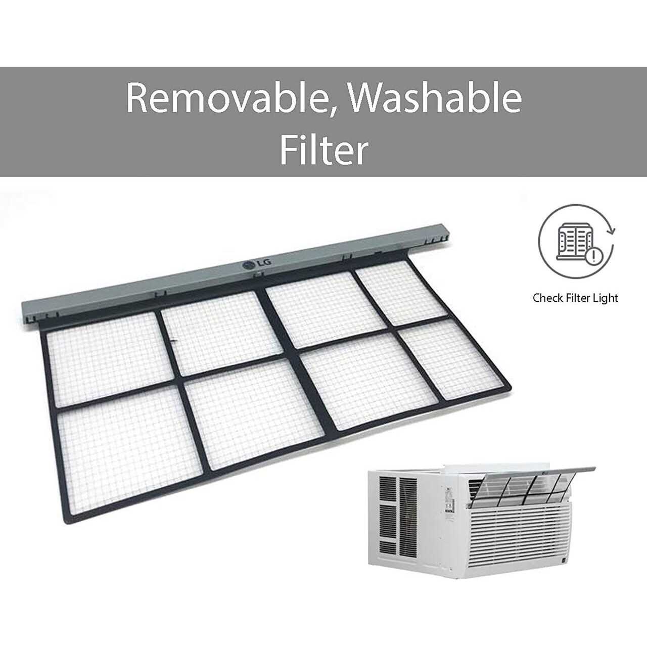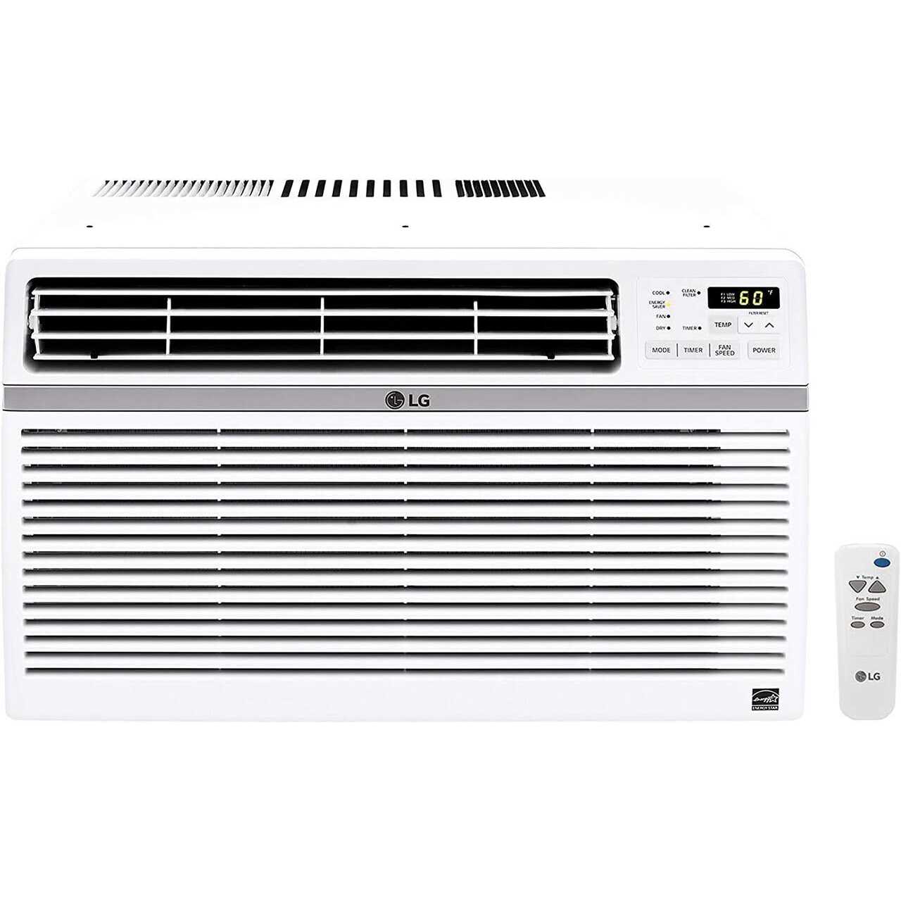 This window air conditioner provides exceptional cooling power that keeps you and your family cool, comfortable, and in control.This air conditioning unit keeps rooms up to 450 square feet cool with 10,000 BTUs of cooling power. With 3 modes of operation, you get customized comfort. This air conditioner features an easy-to use LED display and full-feature remote with simple controls, up/down temperature adjustment, fan speed adjustment. Made for convenience, this air cooler also has a 24-hour on/off timer, auto restart with power failures, super quiet operation, washable air filter, and thermostat.This window air conditioner fits neatly inside window openings that are 27 to 39 inches wide and with least 16 inches of vertical space from sill to sash. This AC unit measures 22 inches long, 23 inches wide, and 15 inches tall. With an included window installation kit, the LG Window Air conditioner is ready to go quickly.