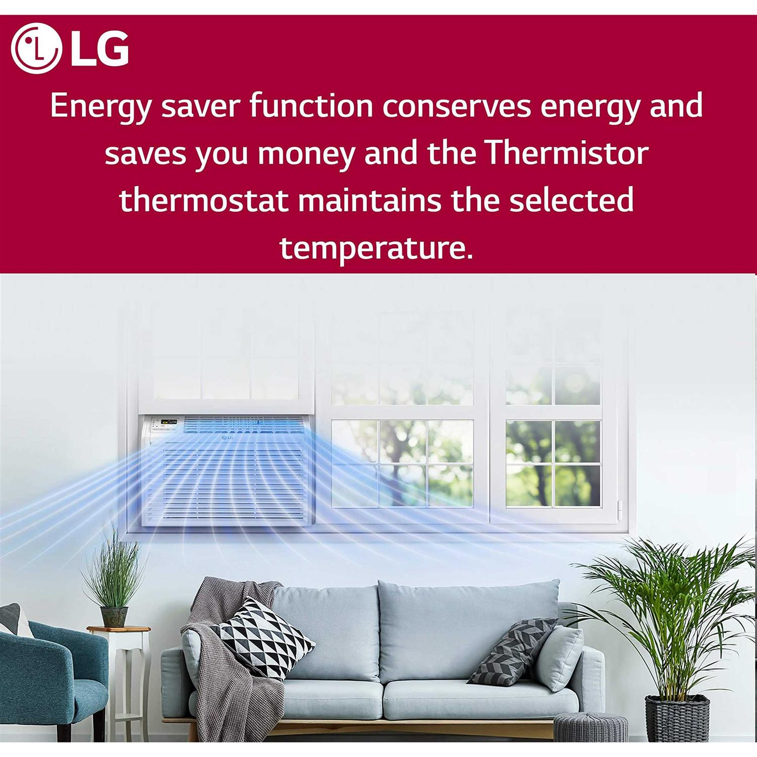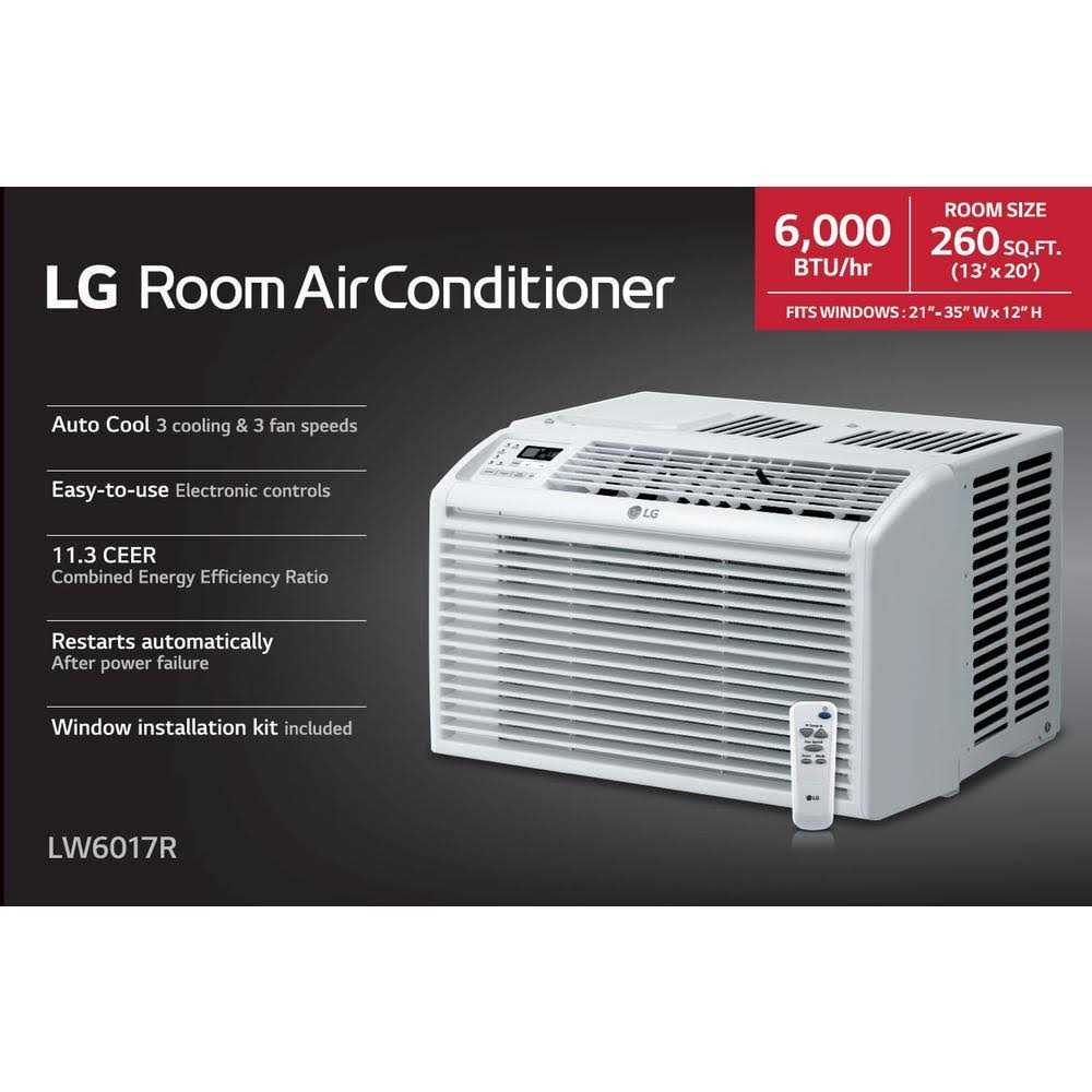 It’s important to get the right air conditioner for the job! The LG LW6017R is ideal for cooling medium rooms up to 250 sq. ft. This unit has 3 cooling and fan speeds and a 24 hour timer to create a cooling schedule. 2-way air deflection lets the flow of air be directed where it’s needed most whether cooling, dehumidifying or just circulating air. If there is a power outage, the auto restart feature will automatically turn your unit back on when power is restored. Other features include a remote control, easy window installation kit, removable, washable filter and a check filter alert. Color: One Color.