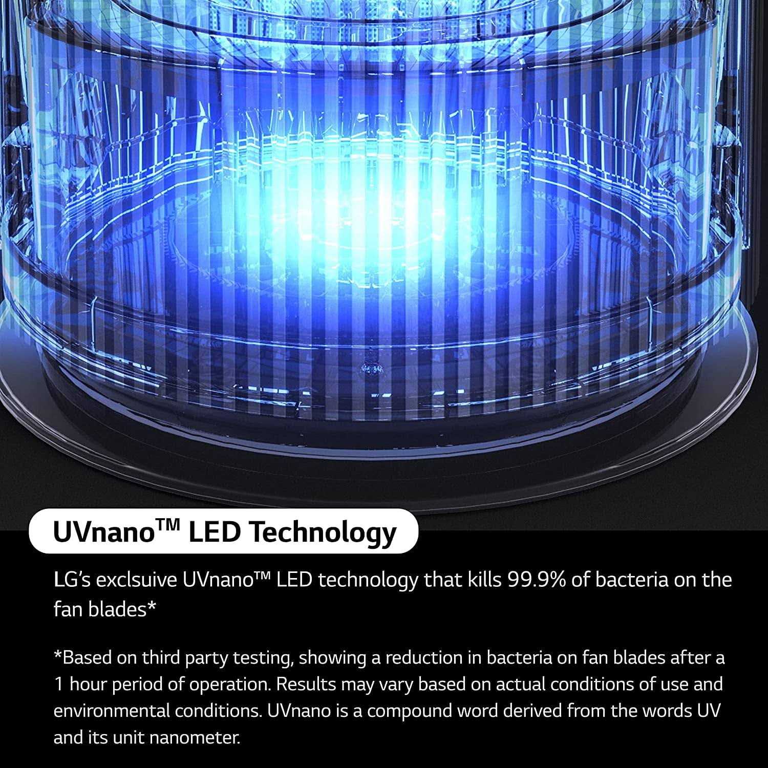 Get cool, clean air with the push of a button thanks to the new LG PuriCare AeroTower! True HEPA filtration and UVnano LED technology clean, deodorize, and filter the air particles as they pass through, giving you a cleaner home in no time. Choose from different fan speeds, oscillation, and particle sensors right from your phone. This air purifying fan has it all and more to help you create the optimal home environment! A Powerful Filtration System for a Thorough Clean The exceptional True HEPA filter captures 99.97% of fine dust and allergens to deliver purer, cleaner air. UVnano LED Technology LG’s exclusive UVnano LED Technology kills 99.9% of bacteria on fan blades for an added layer of protection. Purify Rooms Large and Small LG AeroTower provides purified air where and when you need it, with multiple airflow options and coverage for large rooms up to 818 sq. ft. Particular About Particles The PM 1.0 Sensor continuously monitors & detects contaminants one micron or smaller in diameter (PM1.0). Air quality rating is displayed on LCD display Clean Airflow Customized for Any Room Choose direct, diffused or wide airflow to customize your air flow in any room. Purified Air to Help Keep You Cool Choose from 10 fan speeds, plus oscillation settings to bump up the air movement. Easy-Reach Controls Simple, intuitive controls on top of the tower let you easily adjust settings without having to bend over to see & reach–or use the remote control or ThinQ app to take control without getting up.
