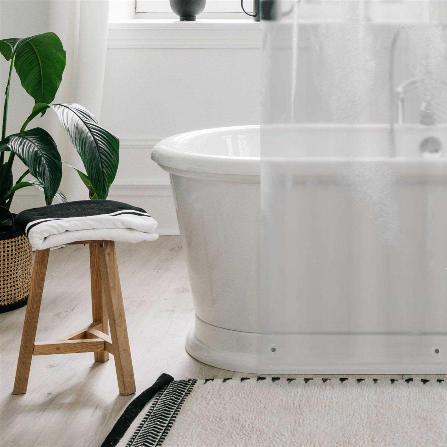 The Liba shower curtain liner is made of a specially designed smooth polyester (PEVA) fabric that resists mildew, shrinking, and creasing. Water droplets simply roll off the textured surface. Featuring a weighted bottom so the shower liner doesn’t move in your bathroom unless touched. The top of the shower liner has 12 rust-proof grommets and a reinforced header so it won’t tear or fray with use. Great for any bathroom looking for an eco-friendly shower liner designed without any unpleasant plastic smell or chemical fumes. The Liba shower liner fits any standard-size shower or tub, whether you have a straight or curved shower rod.