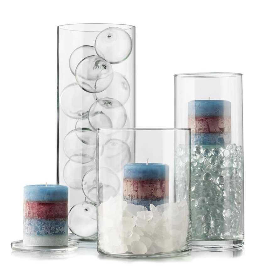 - Six cylinder vases; Height = 10 Inch, Diameter = 3.4 Inch