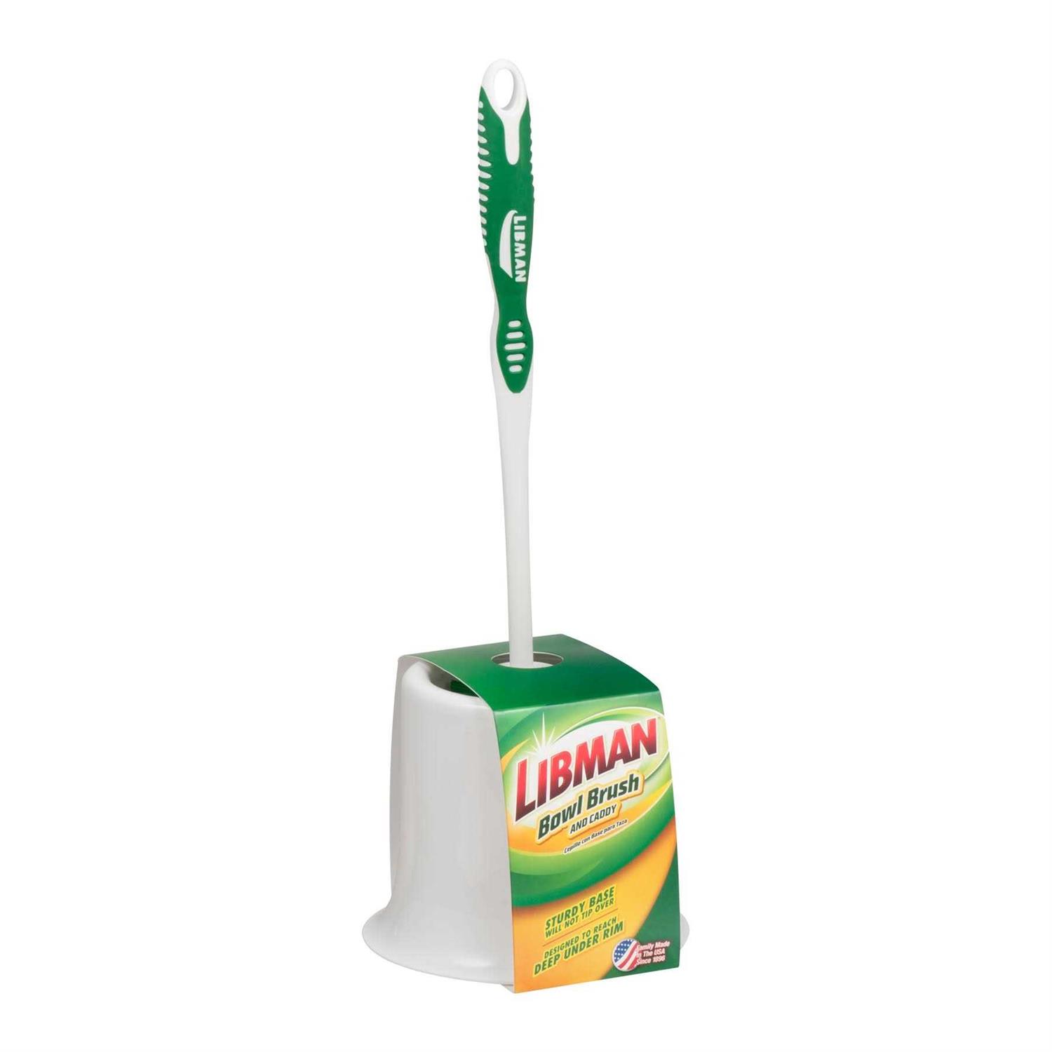 Experience deep, superior cleaning power for tough toilet stains with the Libman Bowl Brush and Caddy. Thoroughly clean hard-to-reach places with the 360-degree bristle placement. When you are finished, the specially-designed caddy was built to hold the brush in its enclosed cup without tipping. Proudly family-made in the USA since 1896.