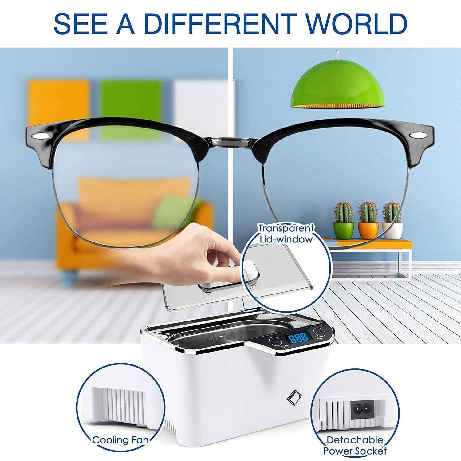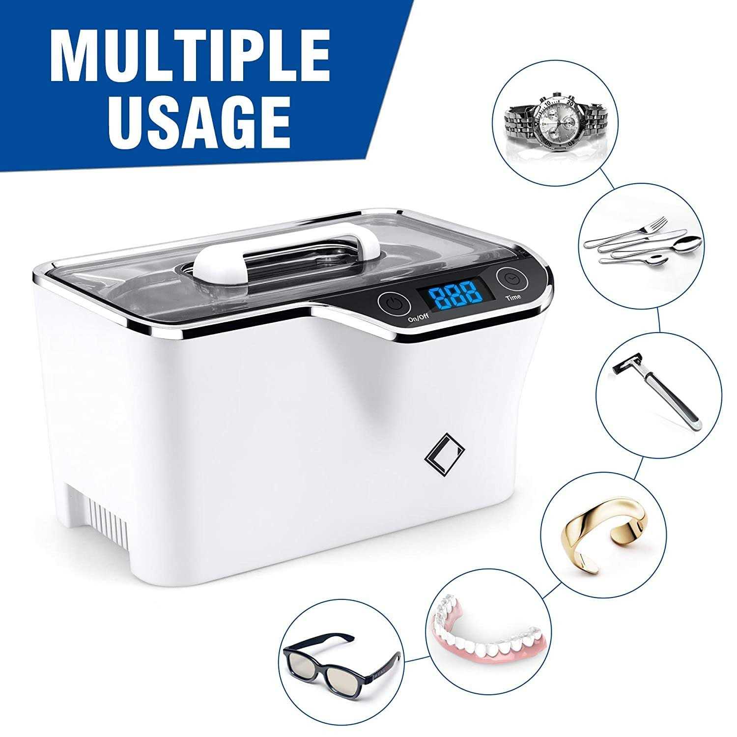 LifeBasis Ultrasonic Jewelry Cleaner Ultrasonic Cleaner Machine Portable 600ml Touch Control, with Watch Holder for Jewelry, Eyeglasses, Retainer,