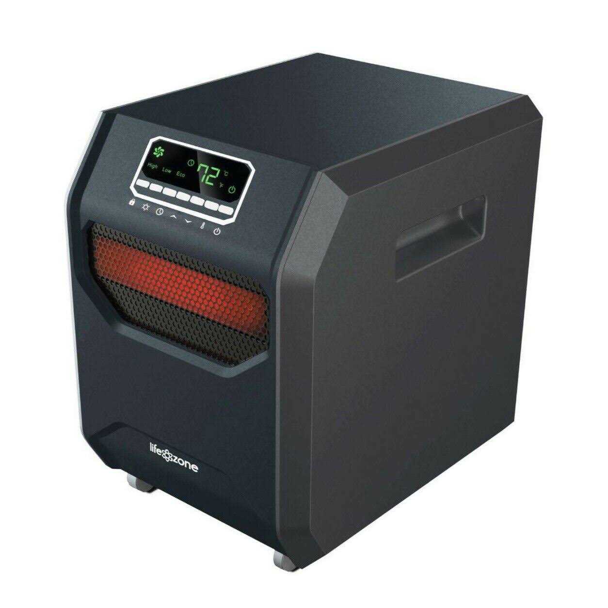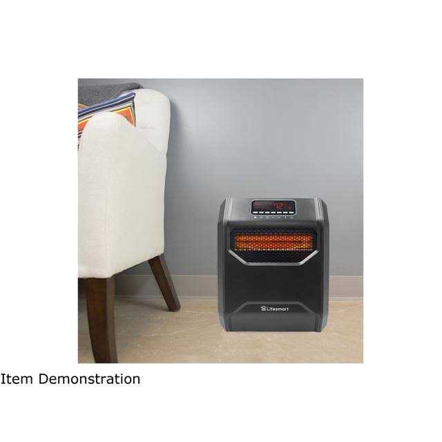 The Lifesmart 6 Element Infrared heater offers you safe and healthy heat for one large room in the home. Lifesmart offers ultra-efficient, safe heat at less cost than other heating systems by using zone heating, allowing you to heat only the room you are in and not the whole house. This heater features 6 of our quartz infrared elements, spreading soft, even heat out in to the room, targeting people and objects, without drying out room air. There are 2 heat settings for up to 1,500-Watt of output, along with an energy saving Eco mode that will use heater wattage to self-regulate and maintain 68 using only the most efficient power consumption. The unit features several convenient operating features including a large, angled, easy to read digital thermostat, button touch controls for 12 hour up/down timer and temperature settings, along with a remote control. The heater is surrounded by a stylish and modern black fireproof cabinet that is cool to the touch. Safety features include a child lock out, overheat and tip over shutoffs.