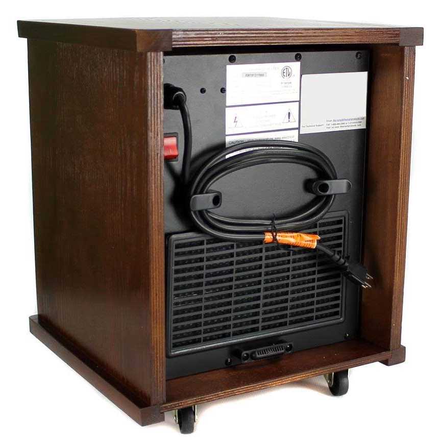 The LifeSmart Infrared Space Heater is an infrared heater that supplements your house’s heating while cutting your utility costs.This heater, much like the infrared heating inside a toaster, is meant to heat objects in the room and provides a more natural warmth that won’t dry out the air. Infrared heaters are designed to work in addition to your home’s heating system. They are not meant to heat through walls or floors and work best in single insulated rooms or garages.Keep your room cozy without turning up the heat and save yourself some money this winter with the LifeSmart Infrared Space Heater. Size: 18 inch H x 14 inch D x 13 inch W. Color: Brown.