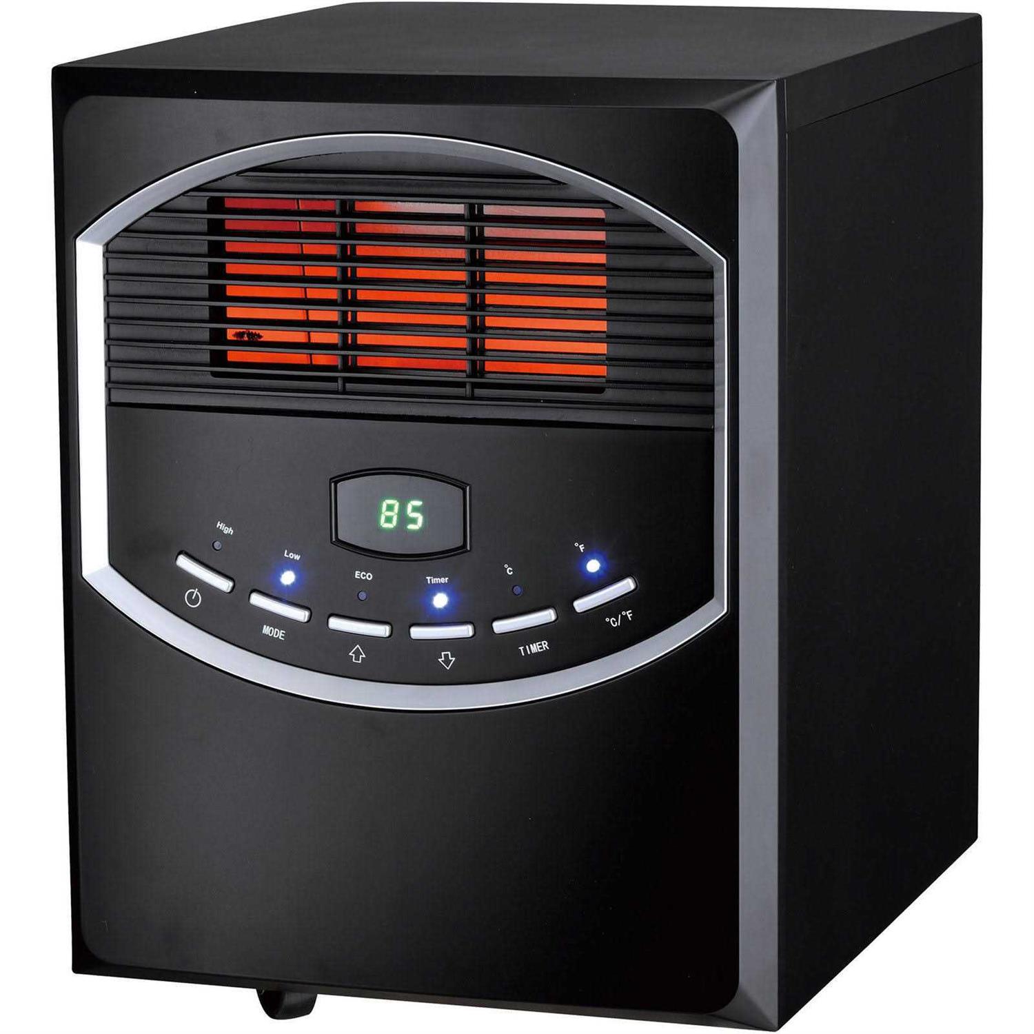 Heat up even large rooms and beat the cold this season with the Lifesmart 4-Element Infrared Large Room Heater. This heater delivers 1,500 watts of power through 4 quartz heating elements and features a 12 hour programmable timer and 3 heat settings. It also comes with safety features like over-heat and tip-over shut off, a cool touch exterior cabinet, and child lock for peace of mind. No assembly is required, simply unpack and plug in the Lifesmart 4-Element Infrared Large Room Heater for the perfect amount of heat all winter long. This sleek, modern heater design of this Lifesmart Infrared Heater is not only a great addition to any room in the home, but is also packed with heating power. Four infrared quartz elements provide even heat distribution throughout the room without drying out the air’s humidity. Two heat settings provide supplemental warmth and comfort for up to 1500 watts of power output. The energy saving ECO mode self-regulates the heater wattage to always maintain 68 degrees. Timer can be programmed for up to 12 hours, so no need to worry about accidentally leaving the heater on. Easy read angled control panel is user friendly and can be operated by button or remote control (batteries not included). Lightweight, stylish cabinet features a contemporary design with built in carry handles for easy room to room portability.