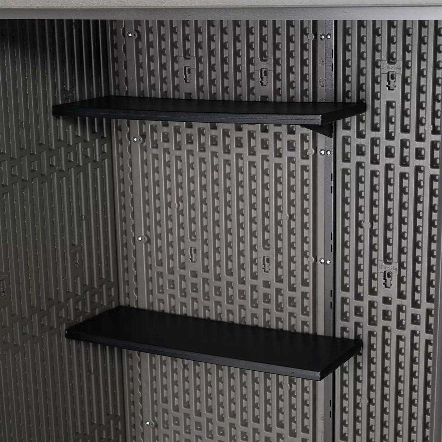 Decluttering your garage and maintaining your yard can be a challenging task. Whether you need a space for yard tools or other equipment, you need the right solution to keep everything organized. Lifetimes Vertical Shed offers an excellent space to store a variety of items around your home. This shed is UV-protected and weather resistant. The two height-adjustable shelves let you organize smaller items such as gloves, trowels, spades, hand rakes and more. The shed frees up valuable space in your garage by providing plenty of room for bigger items like rakes, brooms, shovels, storage totes, bins and even most push mowers. The durable, impact-resistant build, steel-reinforced walls and lockable doors (lock not included) provide plenty of protection for your belongings. With the Lifetime Vertical Shed, you can keep your yard looking organized and pristine.