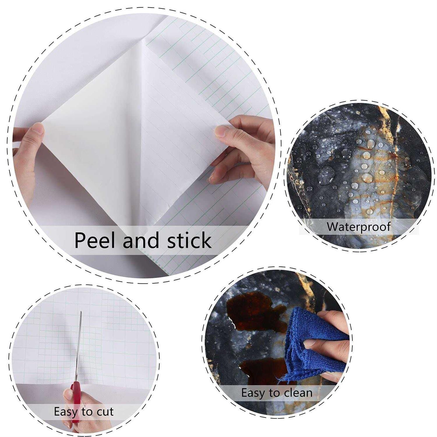 【SIZE & DETAIL】Each roll of this black wallpaper peel and stick is 24 x 118 inches, can cover 19.7 sq. feet. This marble wallpaper can meet your needs for daily home decoration renovation. 【EASY TO USE】 Marble wallpaper peel and stick , can be tailored, no need to use extra glue. And please place the black and gold wallpaper on a clean and dry object . Marble countertop peel and stick waterproof contact paper, just peel off the backing paper and stick on wallpaper on any smooth surface. 【MULTIPLE SCENES】The self adhesive contact paper can be used for computer desk, countertops, cabinets, backsplashes, refrigerators, walls, kitchens, bathrooms, bedrooms, children’s rooms, stairs, etc. It is a kind of removable wallpaper, so it will also be a kind of renter friendly wallpaper, named as temporary wallpaper for apartments. 【FUNCTIONAL ATTRIBUTES】Peel and stick wallpaper black marble design , as well as belong to self adhesive wallpaper , is waterproof, oil-proof, paintable, easy to clean and can be shiplapped and removed. Removable wallpaper peel and stick, self stick wallpaper, counter top stick paper, cabinet contact paper, will meet your daily decoration needs. What’s more, please buy enough rolls of this gold contact paper at a time to make sure they come from the same batch to avoid color difference. And please place the counter top stick paper on a clean, dry object or smooth surface.