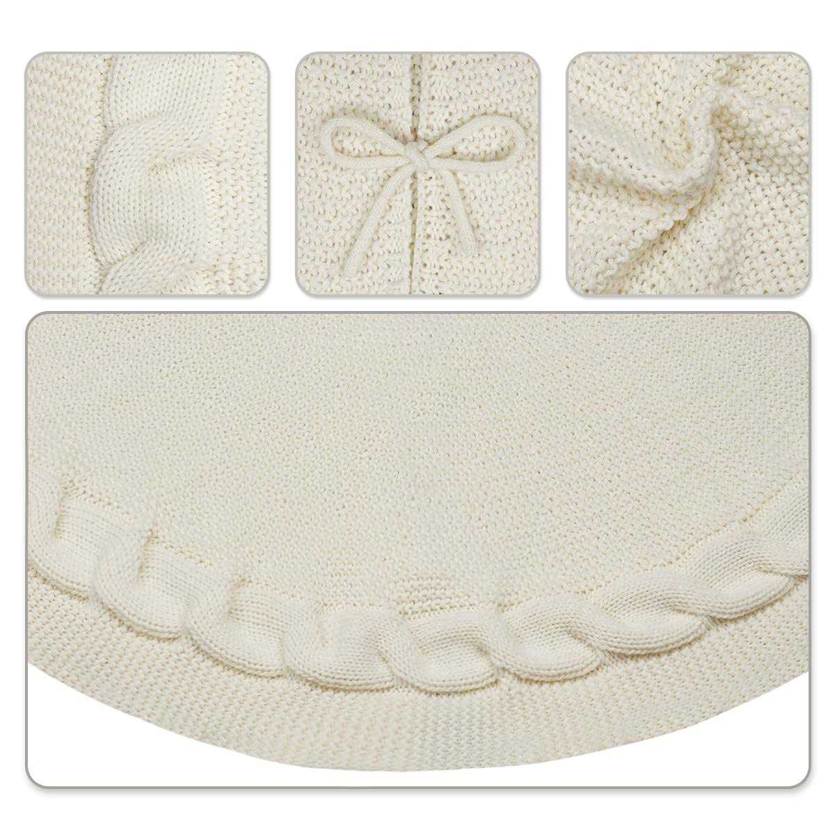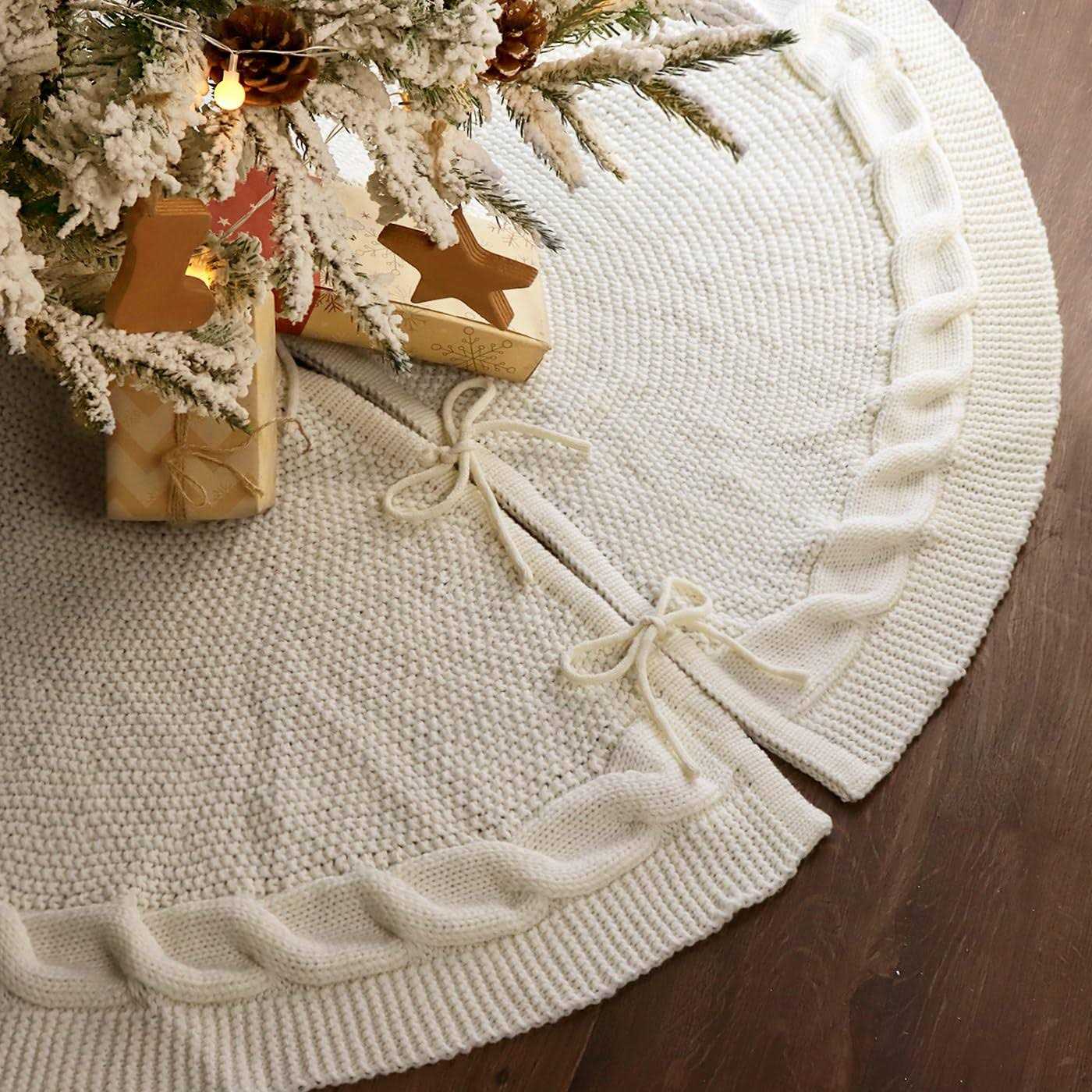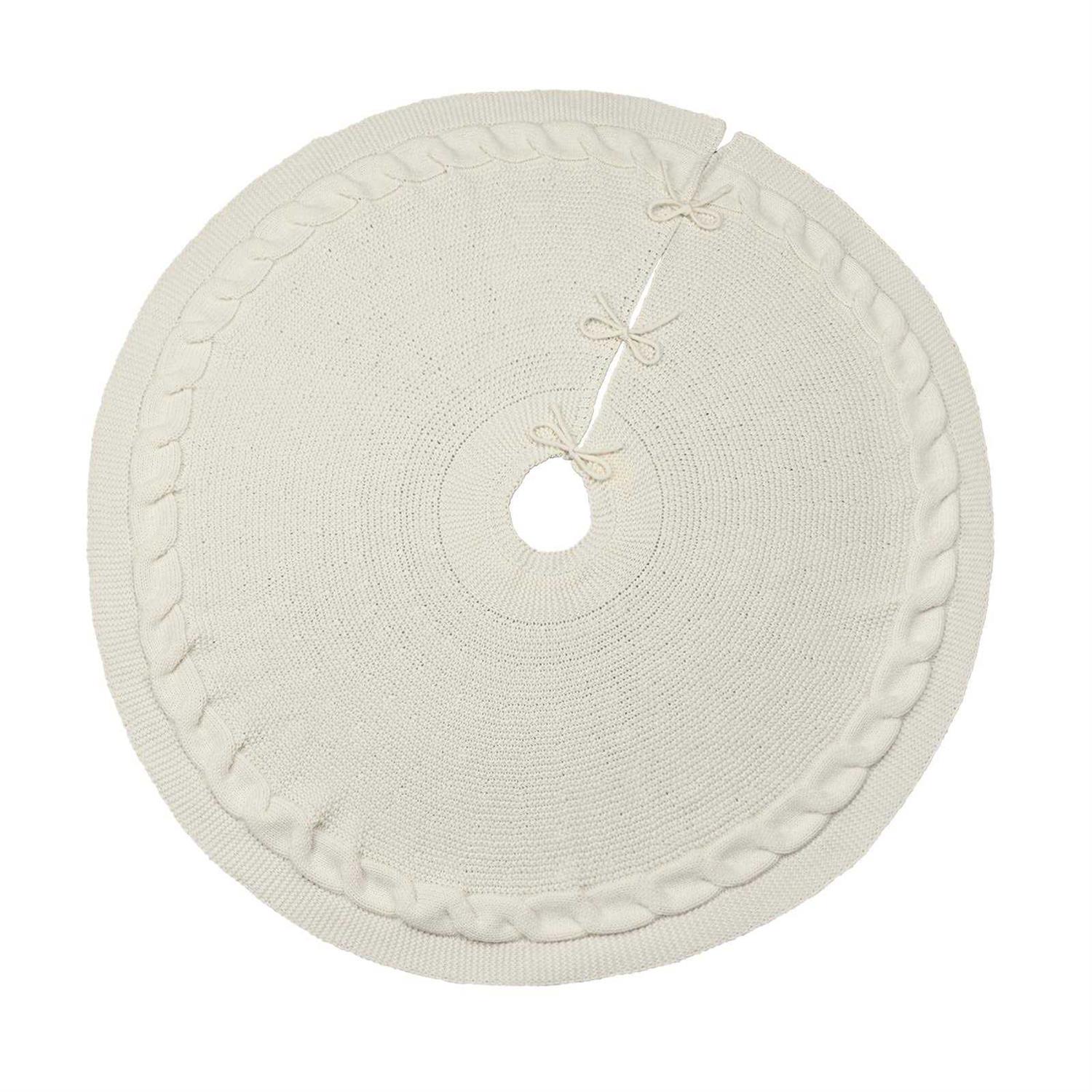 LimBridge Knitted Christmas Tree Skirt: 48 Inches Cream White Tree Skirt, Chunky Cable Knit Thick Rustic Christmas Tree Decorations, Farmhouse