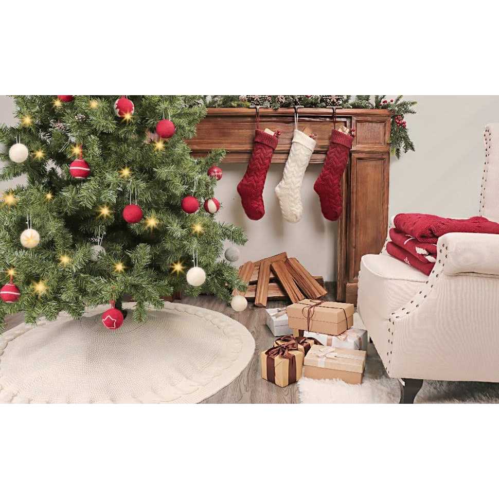 Brand: LimBridgeFeatures: [Merry Christmas] Classic cable knit handcrafted Christmas collection, this cream tree skirt is 48 inches featuring a natural white color. Unique soft touch and authentic knitting, dress your home décor with warm and cozy vibes. [Perfect Size] The standard 48-inch full large Christmas sweater tree skirt fits for 5Ft to 7Ft Christmas trees. Match with LimBridge Christmas stockings and other Christmas ornaments. This Xmas tree skirt will create a harmonious and enchanting atmosphere for your Christmas celebrations. [Gorgeous Design] The Christmas decorations for tree are full of creativity, featuring a thick cross-stitch design with a basic rope cable knit pattern edge decoration. Boast a highly textured finish that brings the perfect touch to your holiday decor. [Premium Quality] Crafted with heavy yarn, sturdy yet soft. The Christmas tree skirts can protect your floor from fallen pine needles like tree collar. Unfading and reusable, good quality can guarantee long-term Christmas decoration use and create lasting memories with your holiday festivities. [Best Christmas Decor] The ivory tree skirt is designed with three ties at the opening to ensure a secure and snug fit under the tree. No more worries about it shifting or sliding. Ideal Christmas tree decorations to decorate your Christmas tree, home, living room, bedroom, wedding, garden. Perfect gifts for men, women, family, kids and everyone you love. Details: LimBridge Cream Knitted Christmas Tree Skirts Specifications: Material: Soft and cozy Knitted heavy yarn Color: Cream/Ivory White Size: 122cm/48 inches Style: Rustic, Classic and Warm Package Content: 1* Knitted Large Christmas Tree Skirt Features: Luxury – Handmade 48-inch round cable knit tree skirt. Basic rope cable knit from super-soft heavy yarn in a festival Christmas classic snow white, this stunning Christmas skirt lends a luxury vibe to your tall tree base. Durable – The intricate cable knit pattern and generous 48-inch diameter cover your tree stand beautifully. The edges of the tree skirt are stitched for durability. Just use the 3 ties to secure it in place underneath the farmhouse Christmas tree. Easy to care – Just gently hand wash in cold water and lay flat to dry. Fluff and shape the cables with your fingers. Easy to set it up and storage, making it the centerpiece of your holiday festivities each year. Ideal for use with both artificial and real Christmas trees, a must-have accessory for your holiday season. Elevate your Christmas decorations with our Knitted White Christmas Tree Skirt and enjoy a festive and stylish holiday season. —–Merry Christmas—–EAN: 0850018138352Package Dimensions: 14.7 x 12.1 x 3.1 inches