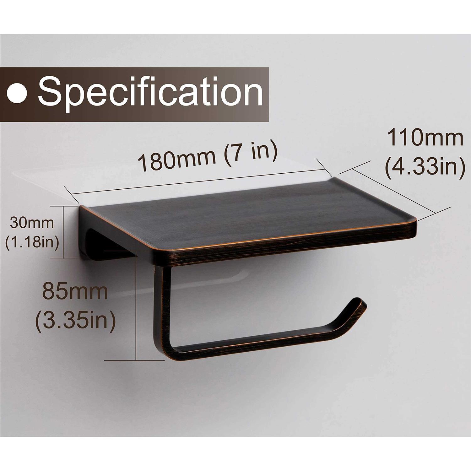 Linkaa Toilet Paper Holder with Shelf Oil Rub Bronzewall Mount Bathroom Decor Phone Holderrust-proof Aluminum Matte Finishbathroom Accessories Storage