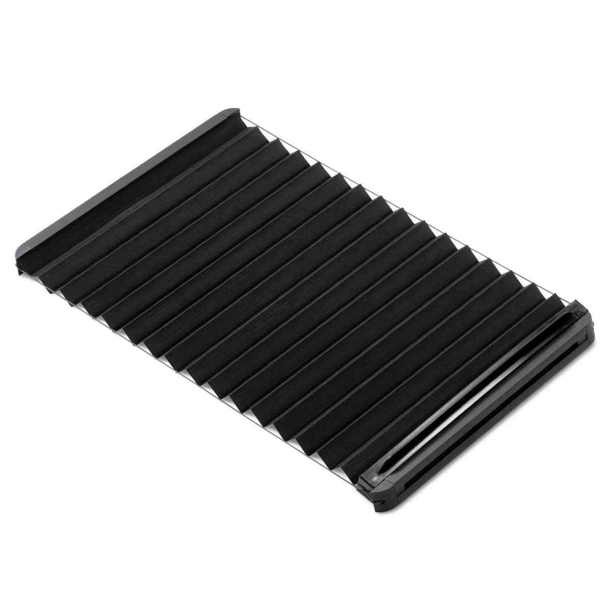 - Integrated into the RV door window frame; other shades and reflectors need to be taken off and put back on when not in use