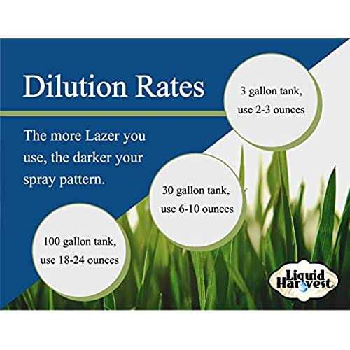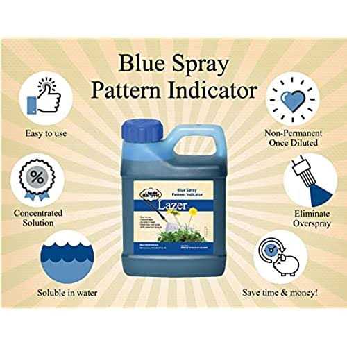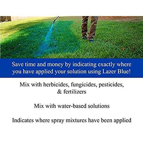 Mixes only with water based solutions, will not work with oil based Easily marks grass and lawns Mix all water based chemical solutions Indicates where spray mixtures have been applied Non-permanent and nonstaining Lazer Blue is a concentrated colorant. Lazer indicates where application spray has been made for the most accurate coverage. The colorant will fade in time with sun and moisture. Lazer is not permanent and will not stain once diluted. Avoid contact with fabric. Lazer can be removed from skin and equipment with several washes. Directions:Add 1/2 oz.of Lazer Blue to every gallon of spray mixture. The more Lazer you use, the darker your spray pattern. POURING ADVICE- To get the smoothest pour with no mess have the FRONT label pointing towards the sky. You need to pour slowly and closely to your container in a controlled manner. Have both hands on the bottle and allow air flow to enter the spout as your pouring, DO NOT attempt to quickly dump this product in your sprayer or spraying equipment. Slow and steady while pouring this, allow airflow to enter the spout as if you were pouring gasoline. Following these steps will prevent messes and allow you to spend more time spraying and less time cleaning! Cleanup- Mix bleach with water and spray onto the dye, it will clear the dye like a magic trick. Make sure you ventilate the area as bleach can give off a strong smell.