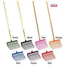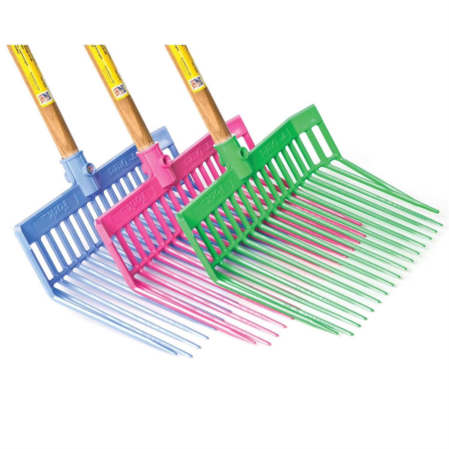This is the original Little Giant DuraFork bedding fork that is a fixture in stables and barns everywhere. Manufactured from extra-strong 100 percent polycarbonate to provide super strength and flexibility. Designed for long-lasting use around the farm, ranch, and home. Specially designed tines are uniquely angled to provide easy manure pickup with less spilling. Nylon locknut secures the 52 inch long by 1.125 inch diameter hardwood handle. Fork head is 13.125 inch long by 15.125 inch wide.