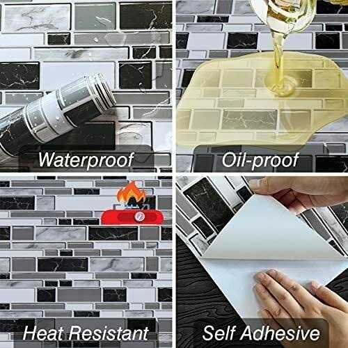 Wallpaper by Livebor. Details:Warm: The kitchen wallpaper is a FLAT contact paper with 3D effect. Size Name: 11.8inch x 118.1inch = 9.69 sq.ft Color:Black and White Wallpaper for Kitchen Material: Vinyl Self Adhesive Wallpaper Cover Size: 11.8inch x 118.1inch Design Style: Mosaic Usage: kitchen, bathroom, wall decoration, countertop, kitchen backsplash, bathroom wall and so on. Product Advantages: 1. 2. Easy to Apply, Removable, Durable, and Moisture Resistance, the best choice for kitchen and bathroom. 3. Made from removable self-adhesive pvc material. 4. No transfer film needed, simply peel and stick. Instruction For Use: 1. Perfectly used in kitchen, bathroom, countertop, backsplash and so on. Just stick and paste. 2. There are grid lines on the back, which can be easily cut as needed. 3. Measure the surface to cover. Cut the film into right size, leaving about 5mm extra overlap on all edges is better. 4. Peel off the backing paper evenly with one hand whilst…