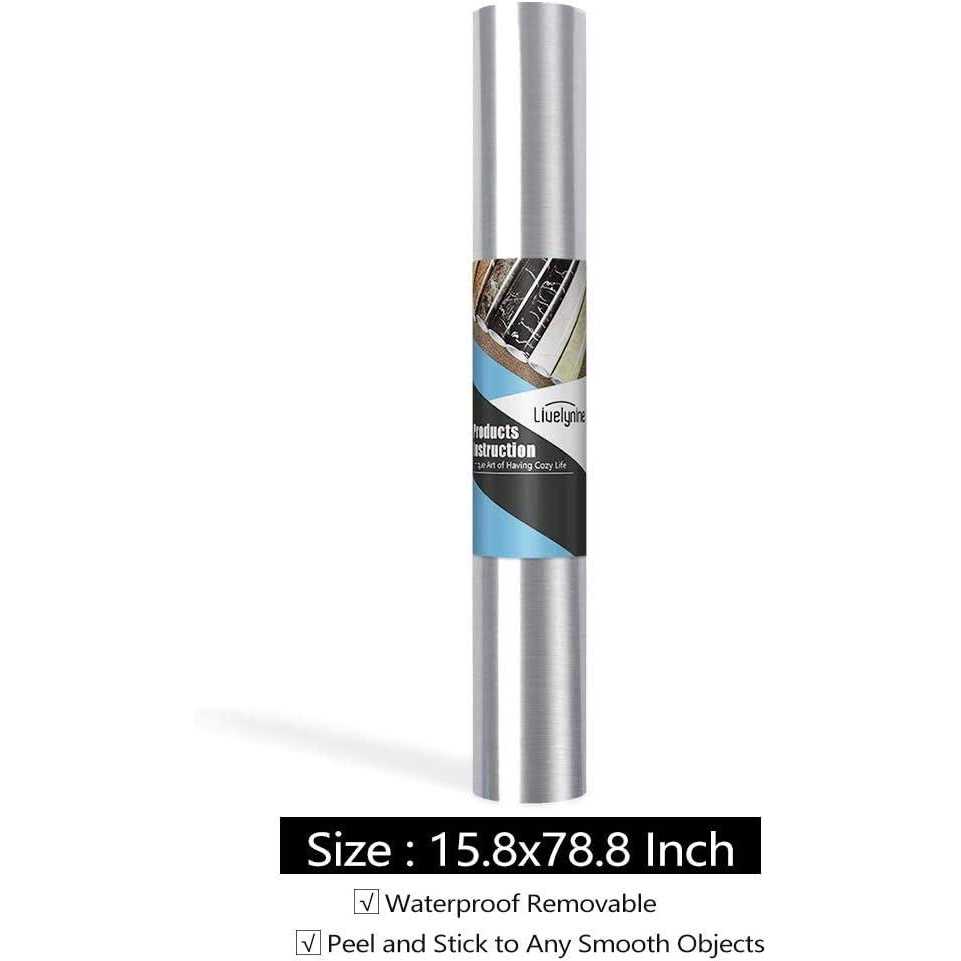 Livelynine Contact Paper Peel and Stick Stainless Steel Wallpaper Silver Vinyl Wrap for Countertop Kitchen Appliances