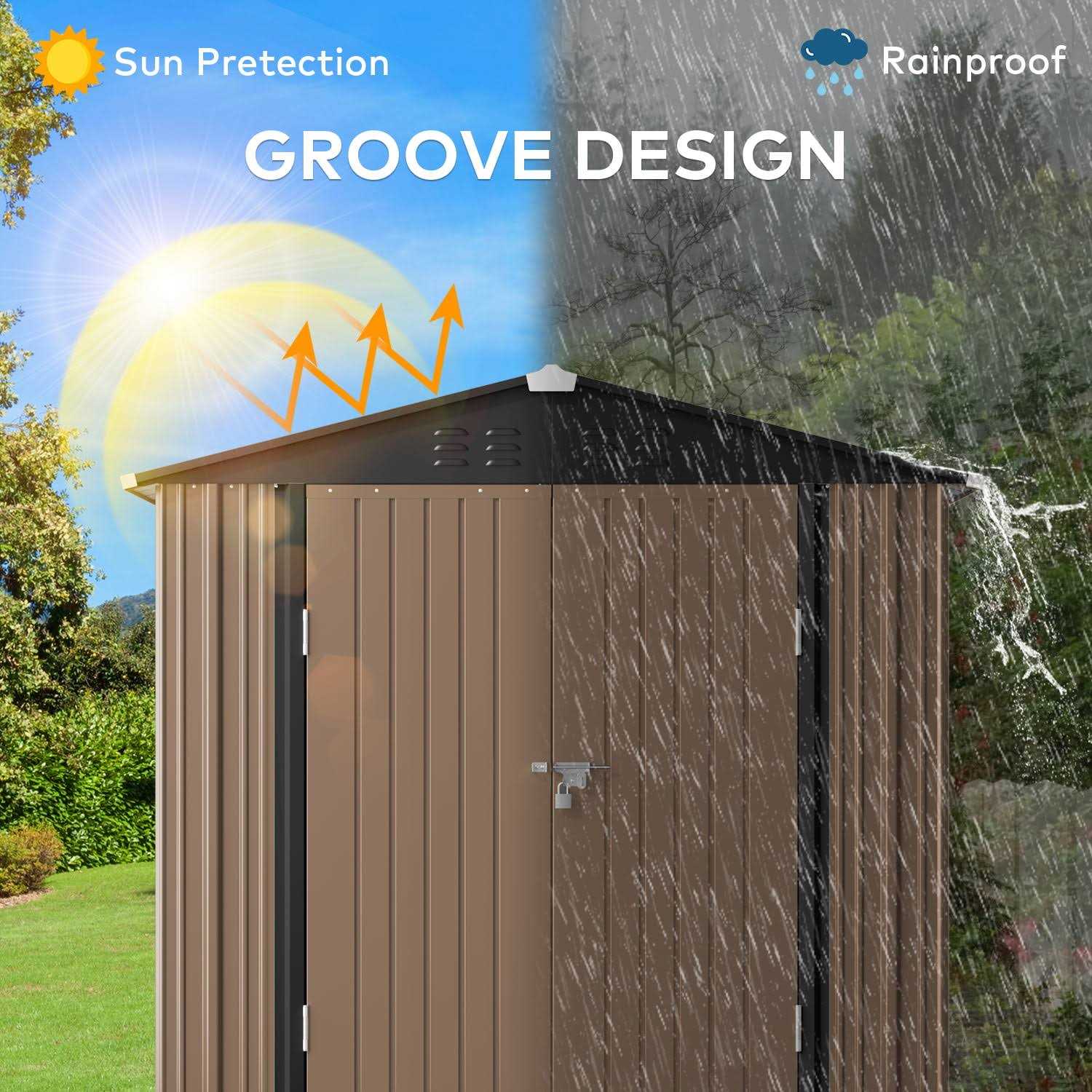 Lofka 6 x 4 ft Outdoor Shed for Storage, Metal Garden Shed with Double Lockable Doors, Brown, Size: 6 x 4 Outdoor Storage Shed