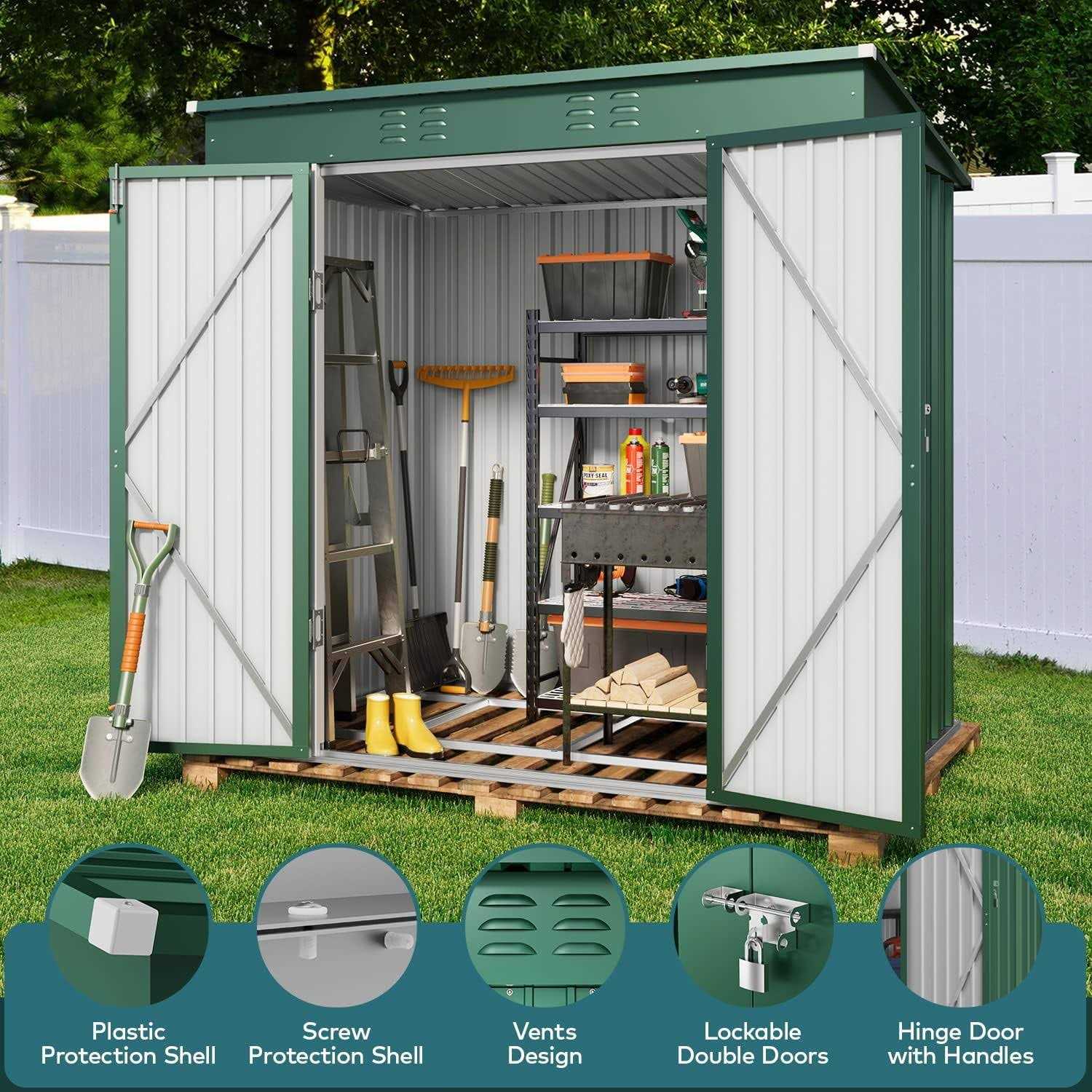 Lofka Outdoor Storage Shed with Double Lockable Doors and Base Frame