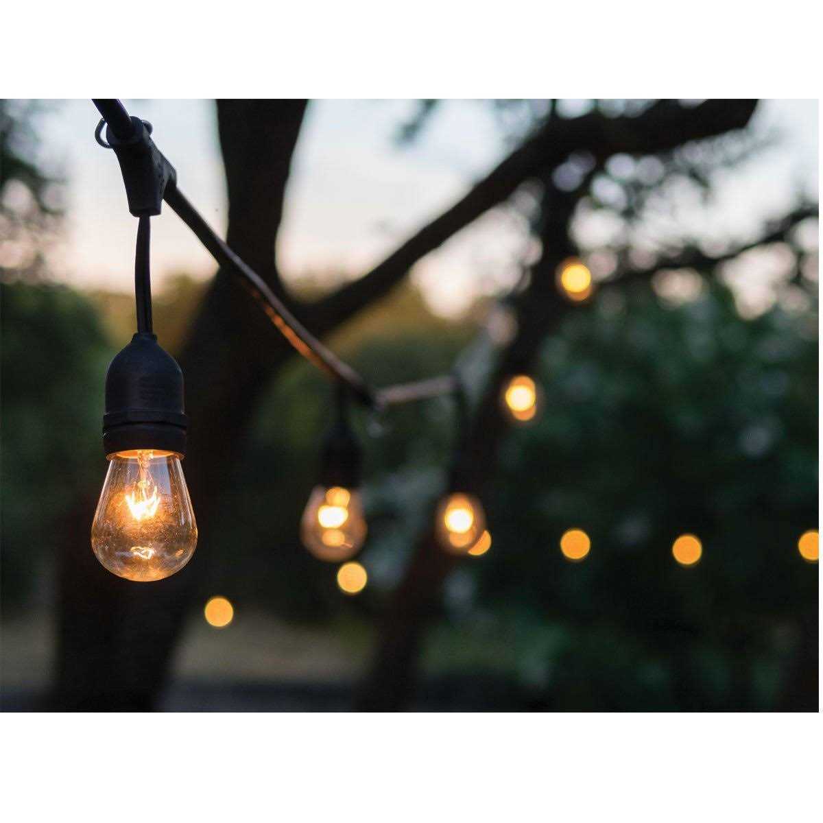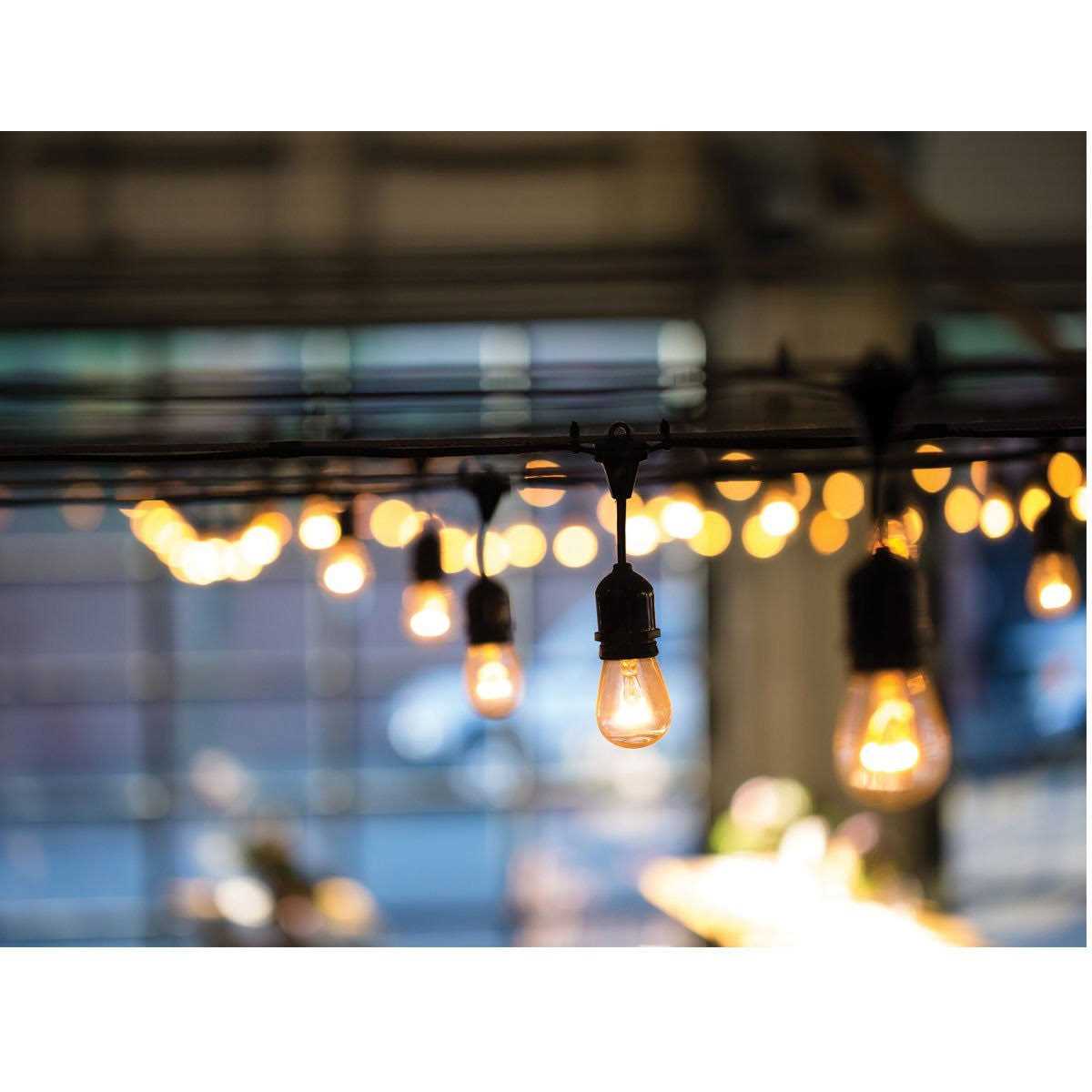 Get enchanting warm, incandescent lighting for your outdoor events and parties. This 24 ft. long string of 12 incandescent lamps can be combined with up to 9 other strings for a total of 216 feet of light. The unfrosted 11 Watt bulbs produce a warm, cheerful glow.