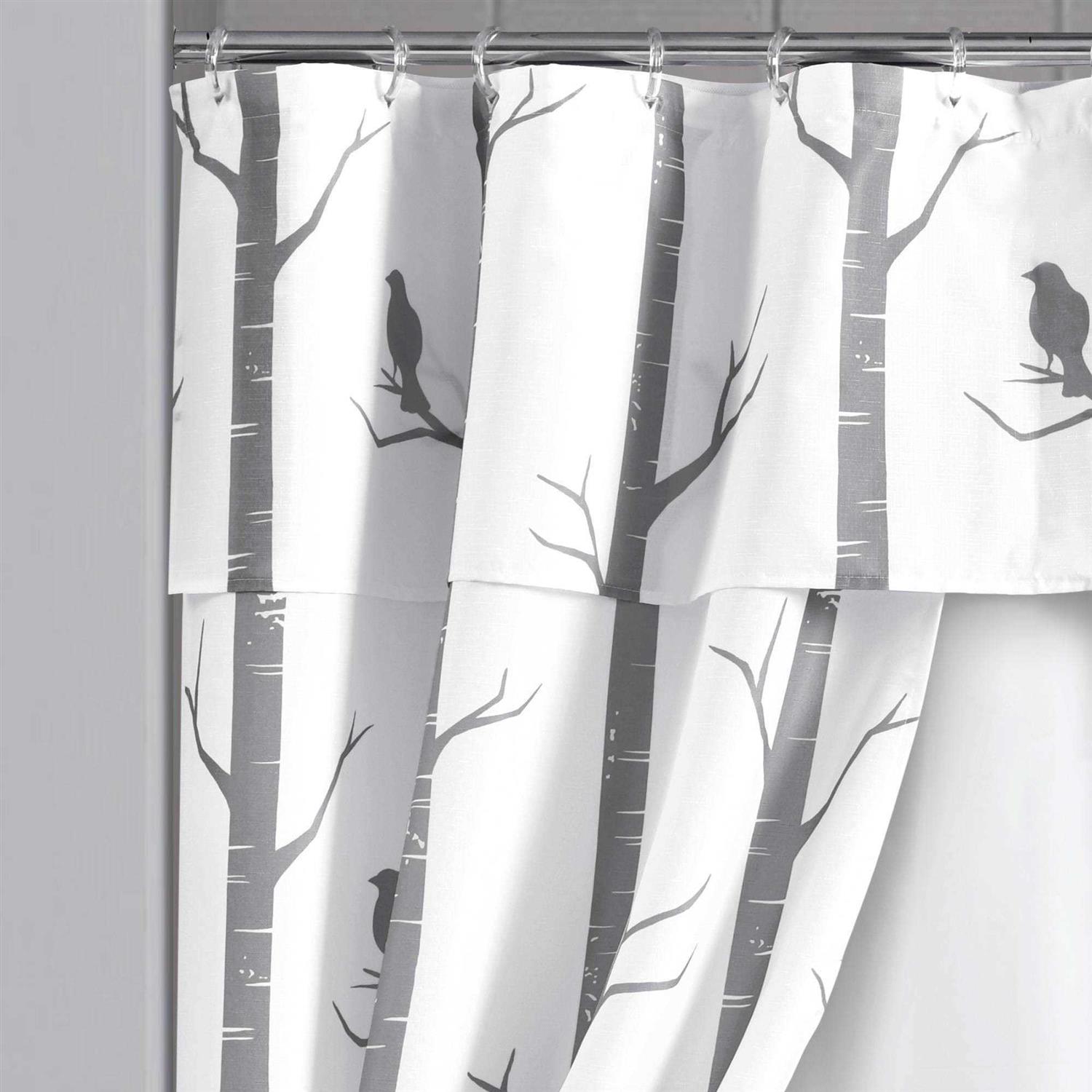 Lush Decor Bird on The Tree 16 Piece Swag Shower Curtain Set (Gray)