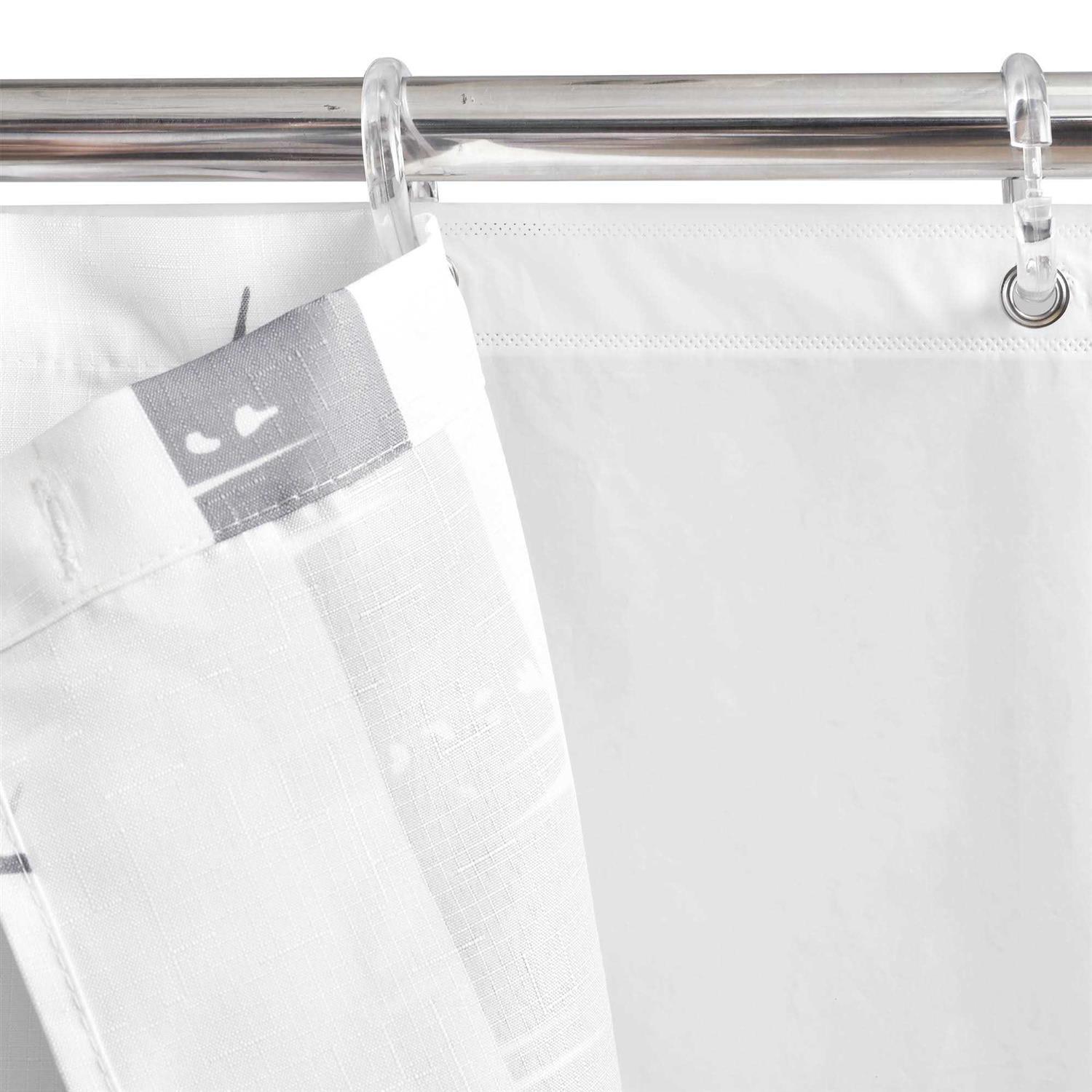- 16-pc set includes: 1 Shower Curtain, 1 Peva Lining, 12 Rings, 2 Tie Backs.