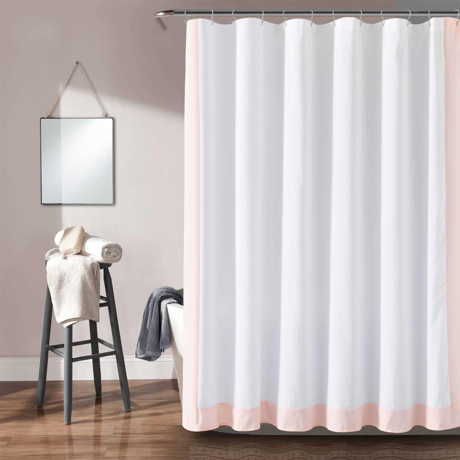Lush Decor Block Border Shower Curtain White/Blush Single 72×72