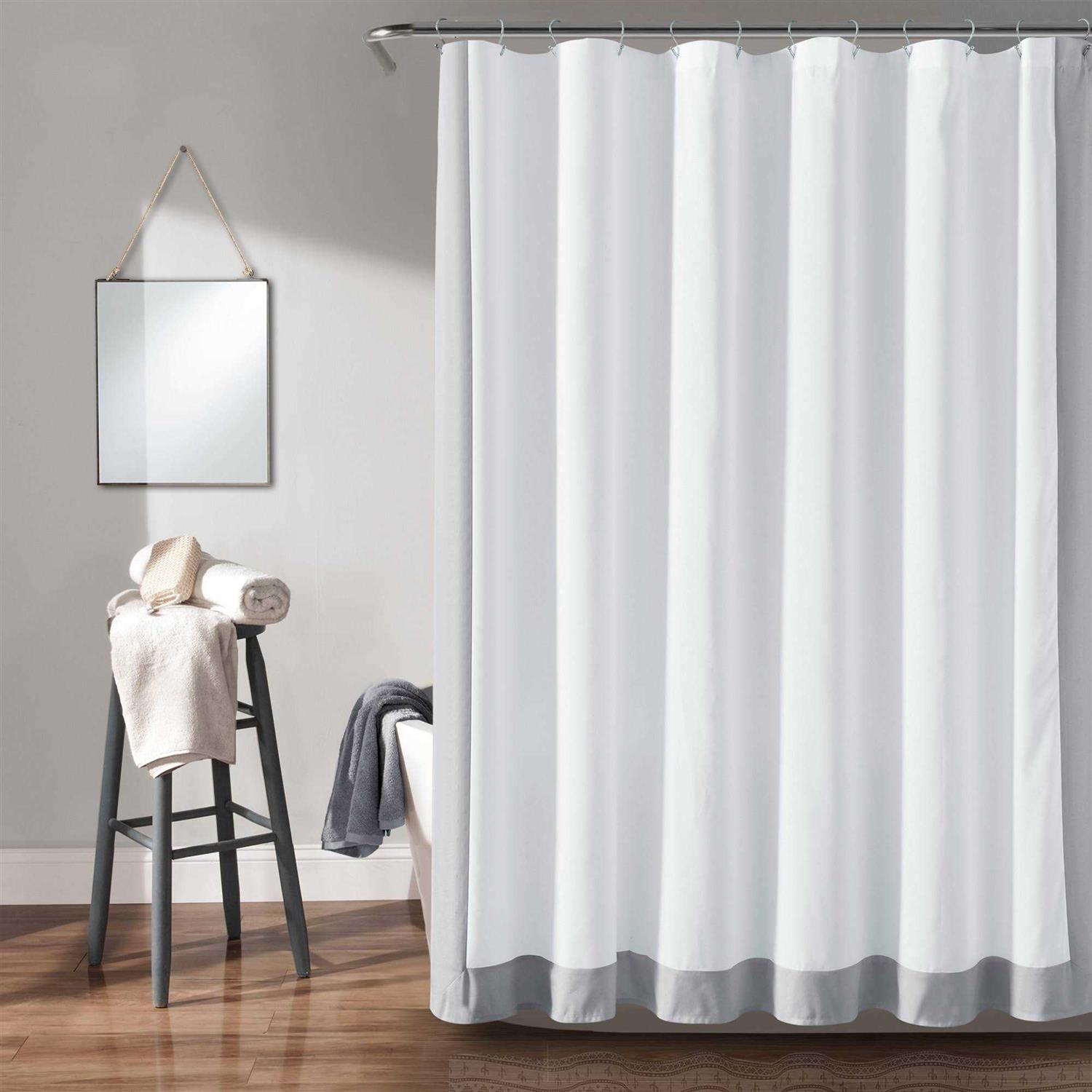 Brighten your bathroom look with the sleek design of this STANDARD 100 by OEKO-TEX certified shower curtain. The block border adds a pop of color to your space in a modern way. This curtain can easily be styled and coordinated with your exisiting decor. Elevate your bathroom style with this modern shower curtain. With a stylish block border design, this two-toned shower curtain is perfect for contemporary bathrooms. It’s easy to style and hangs beautifully with complementing decor, making your daily shower experience that much more enjoyable. Add it to your list of must-haves for a quick and easy guest or primary bathroom update! This shower curtain measures 72 inches on each side and should fit most standard bathtubs. Machine wash and dry. Please refer to label for full care instructions.