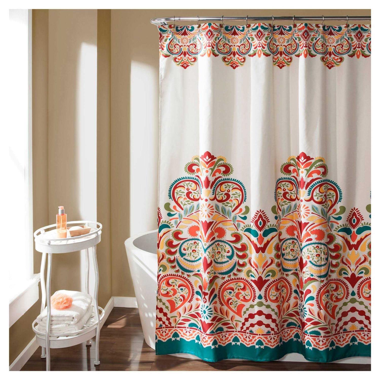 Lush Decor Clara Shower Curtain – Fabric Colorful Boho Paisley Damask Print Design, 72” x 72”, Turquiose & Tangerine Color:Turquiose & Tangerine This intricately laid out design explodes with vivacious colors that tingle your senses. Clara is a modern age beauty who also offers an artistic Bohemian flare. Product Features 100% Polyester Soft, 100% polyester fabric shower curtain with a stunning and unique design to enhance your space. Bold, eye-catching colors with a paisley damask pattern for a mix of modern and boho style shower curtain. Lush Decor Clara shower curtain is the ideal piece for your rustic, yet chic, bohemian bathroom decor. Measures 72 x 72 inches. Pattern order on curtain may vary with purchase. Easy to care for and safe to machine wash cold in a mesh laundry bag, gentle cycle and tumble dry low.