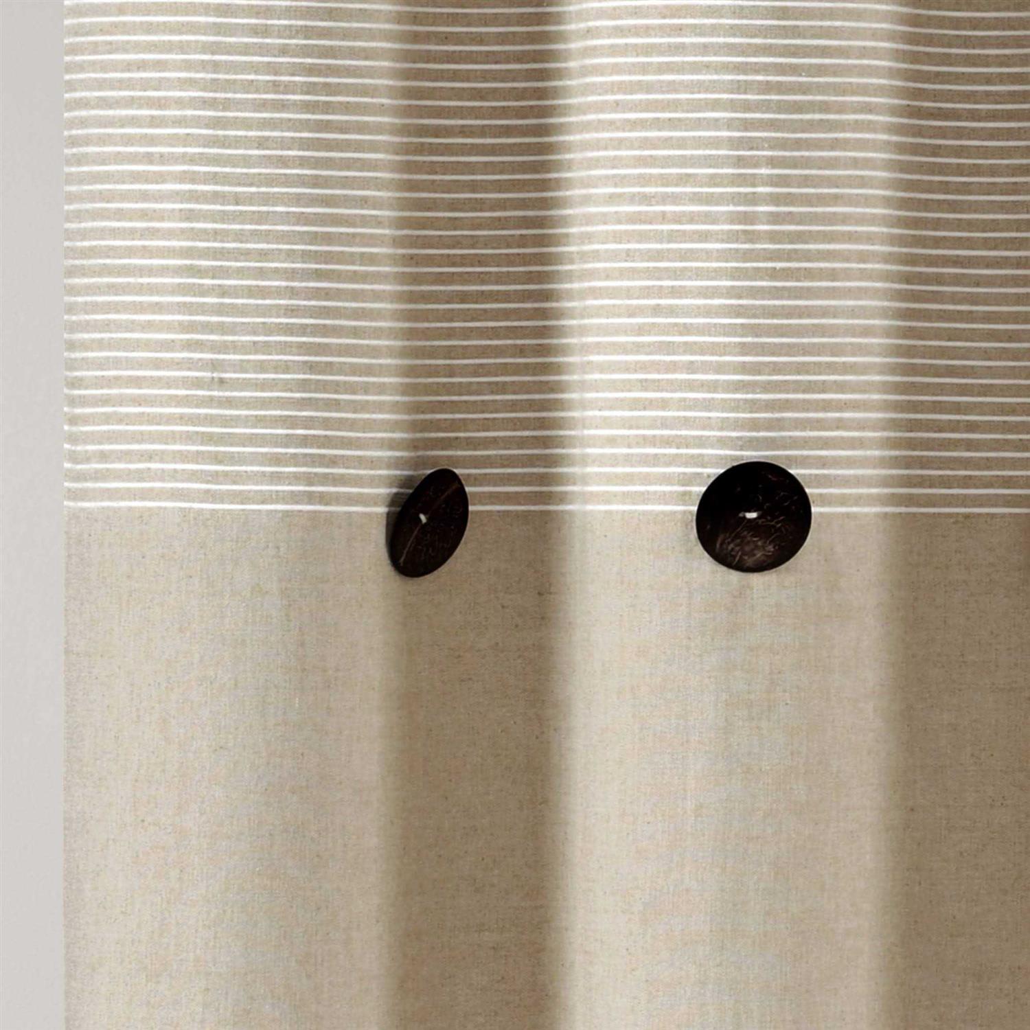Lush Decor Farmhouse Button Stripe Yarn Dyed Woven Cotton Shower Curtain – Linen